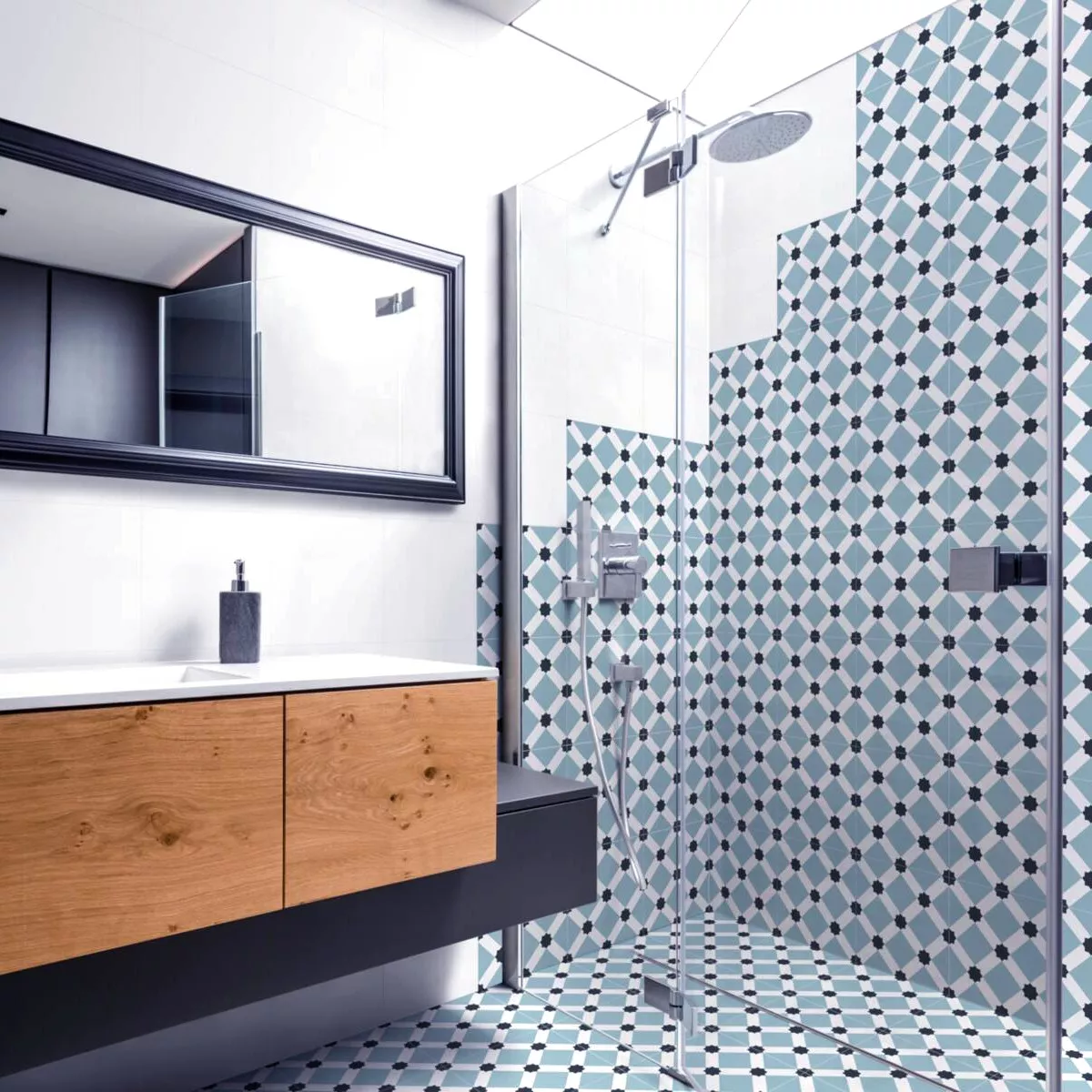 Bodenfliesen Zementoptik Atlantica Colmar Blau Weiß