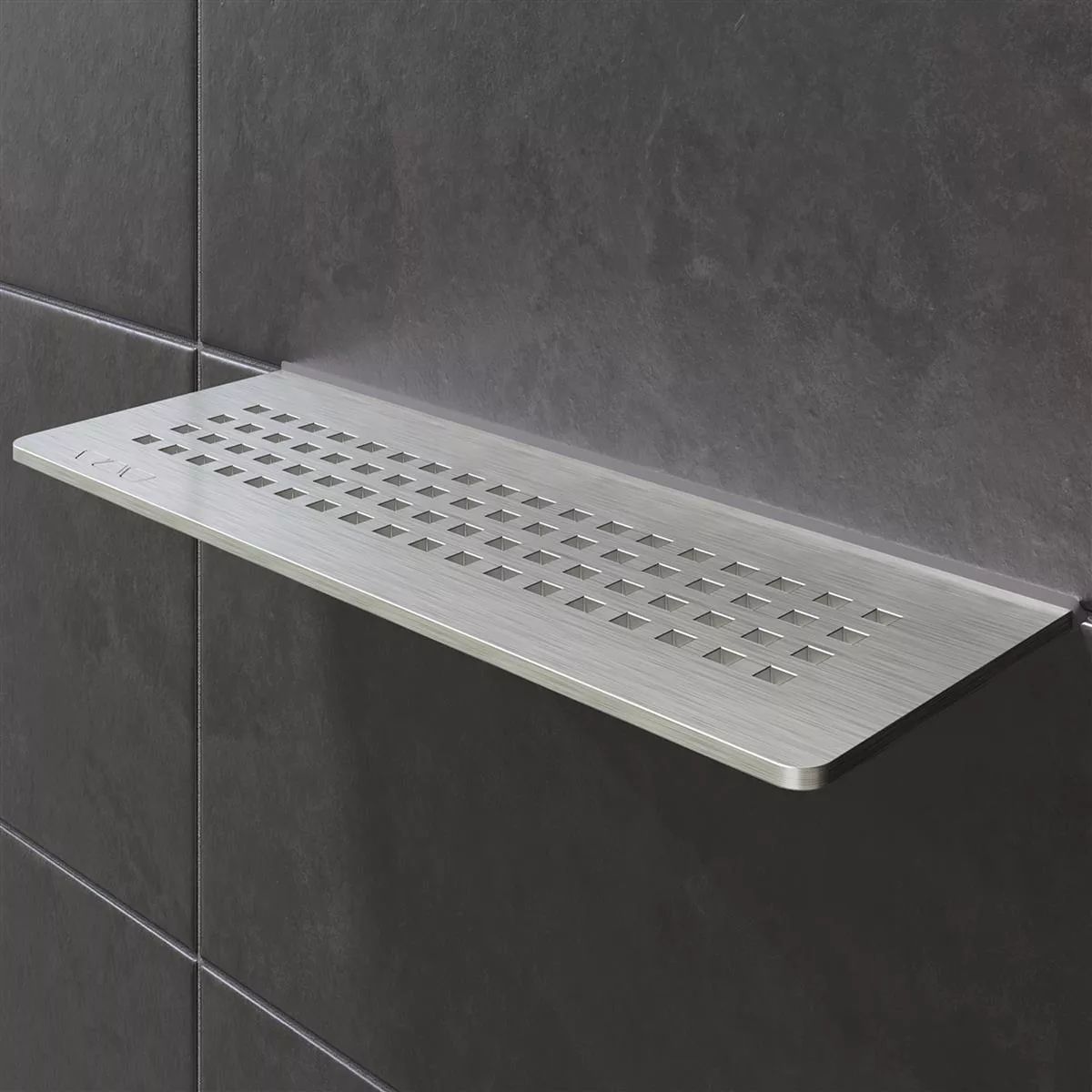 Rektangulær vegghylle Enten på badet eller kjøkkenet: Du kan bruke Schlüter-SHELF-W rektangulær hylle hvor som helst i det flate veggområdet der du for øyeblikket legger flisene dine. Takket være trapesformede perforerte festeben er hyllene ekstremt stabile og spenstige, men imponerer samtidig også med sitt moderne utseende. Ikke bare kan du velge mellom fem attraktive design, men også mellom børstet rustfritt stål og aluminium, hvor sistnevnte er høykvalitets pulverlakkert med en populær TRENDLINE-farge eller en MyDesign RAL-farge.