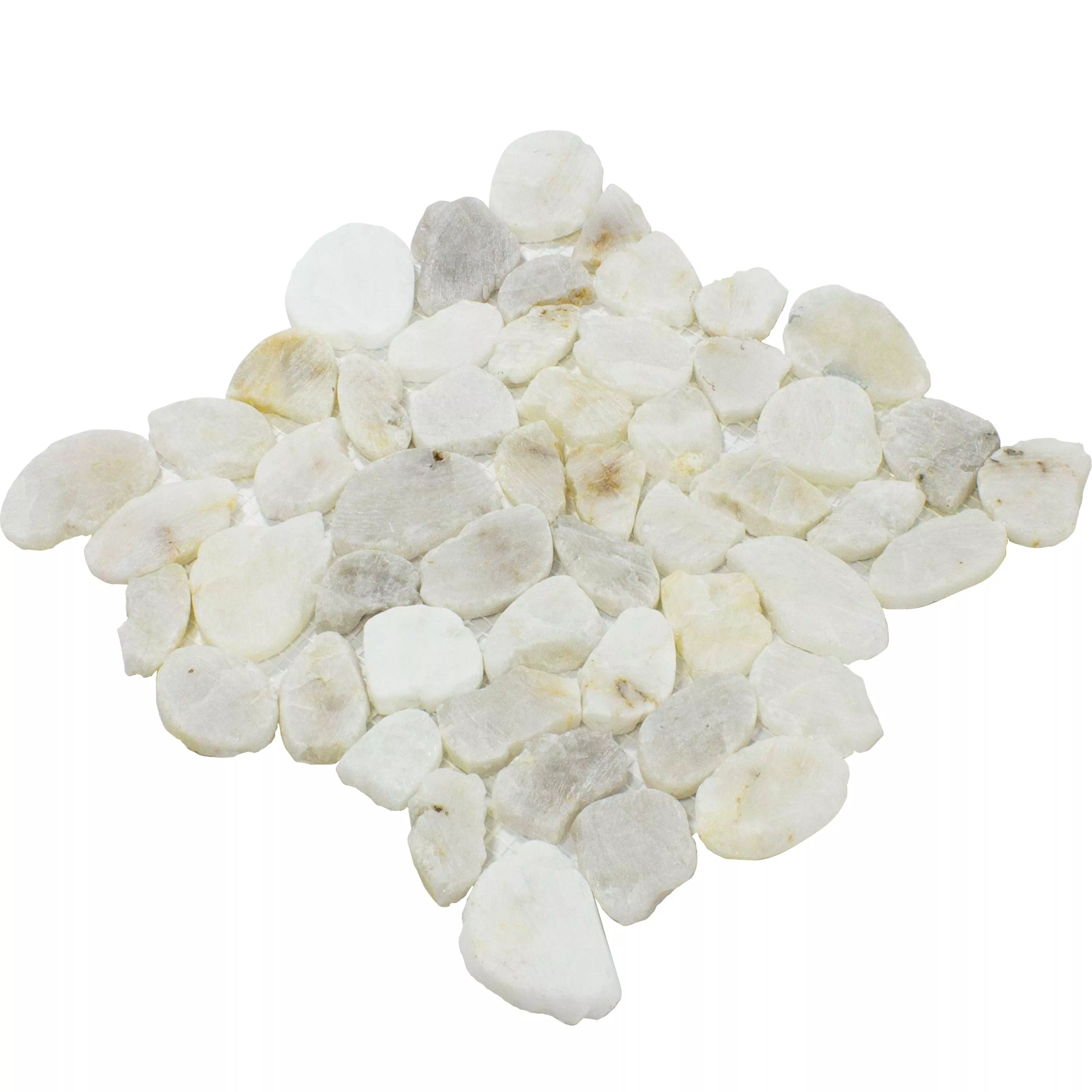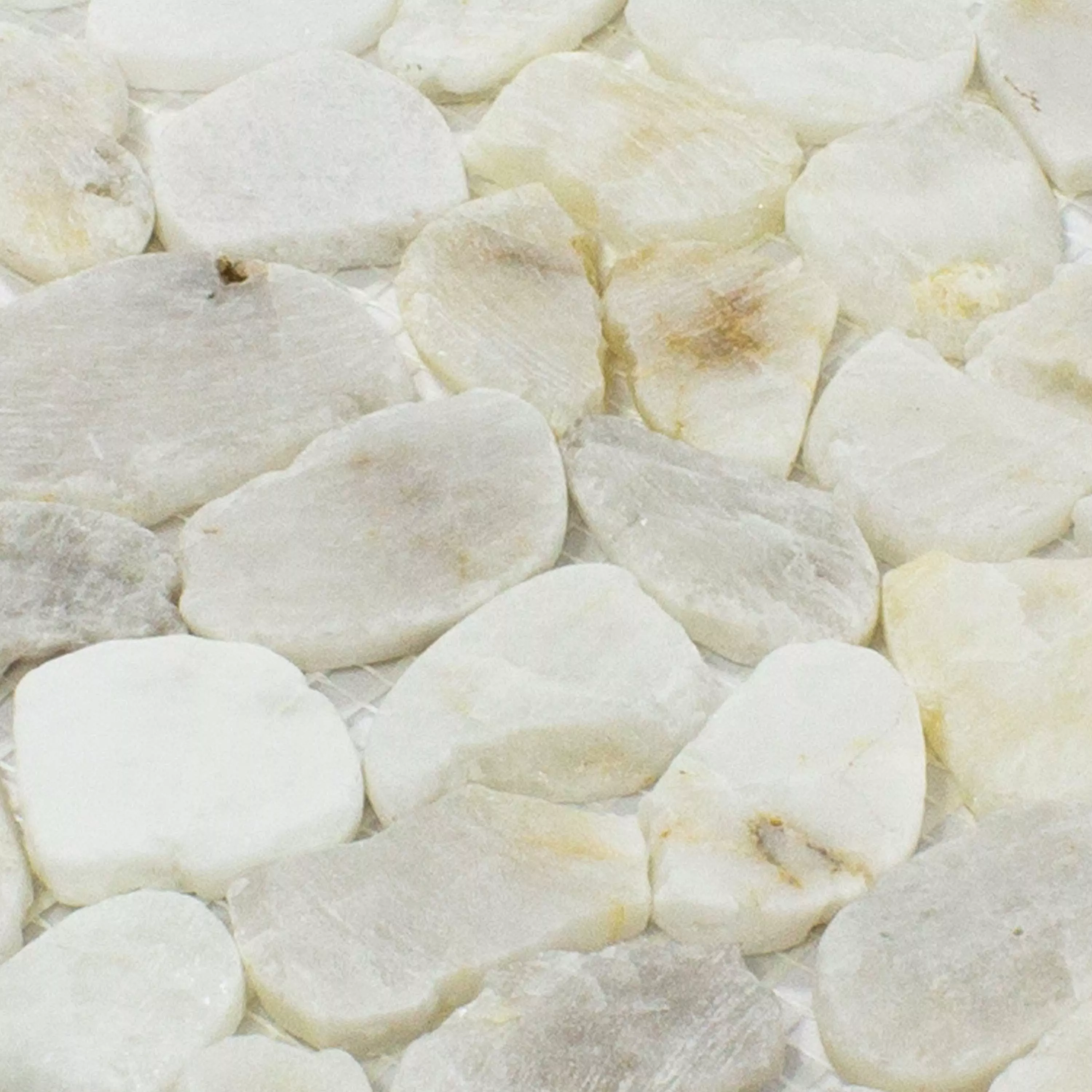 Naturlig eleganse er presentert i elven småstein mosaikk naturstein fliser Riva White. Den tidløse hvite nyansen, den matte overflaten og den unike kvartslooken gir rommene et harmonisk utseende. Disse flisene er laget av naturstein og egner seg for vegg- og gulvbelegg, med ekstra frostbeskyttelse og sklisikkerhet.