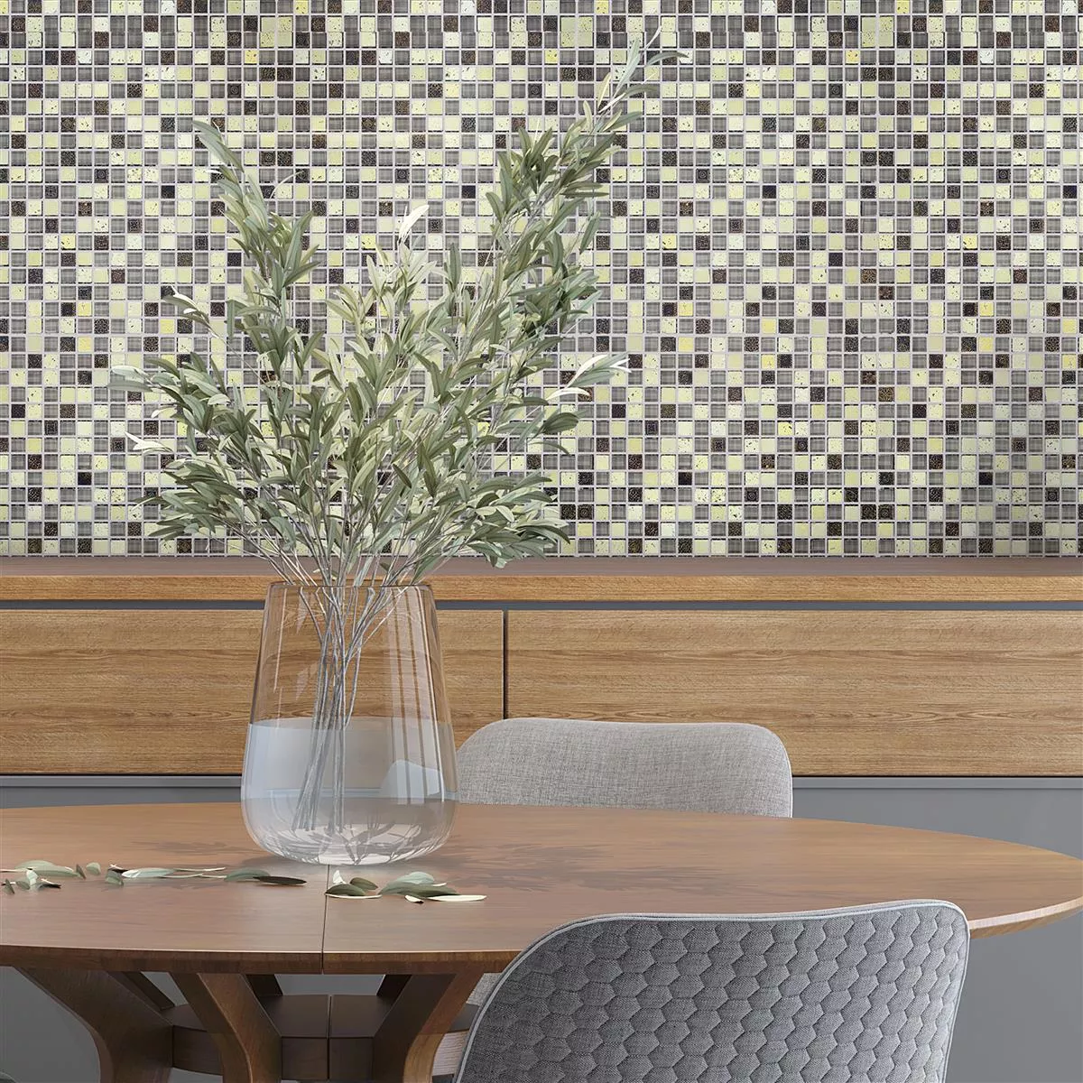 Oppdag den tidløse elegansen til "Majestic" glassmarmormosaikkfliser - en perfekt kombinasjon av sølv og brunt som vil legge til et snev av raffinement til rommet ditt. Med en sofistikert blanding av glass, naturstein og marmor, tilbyr disse flisene ikke bare estetisk skjønnhet, men også imponerende holdbarhet.