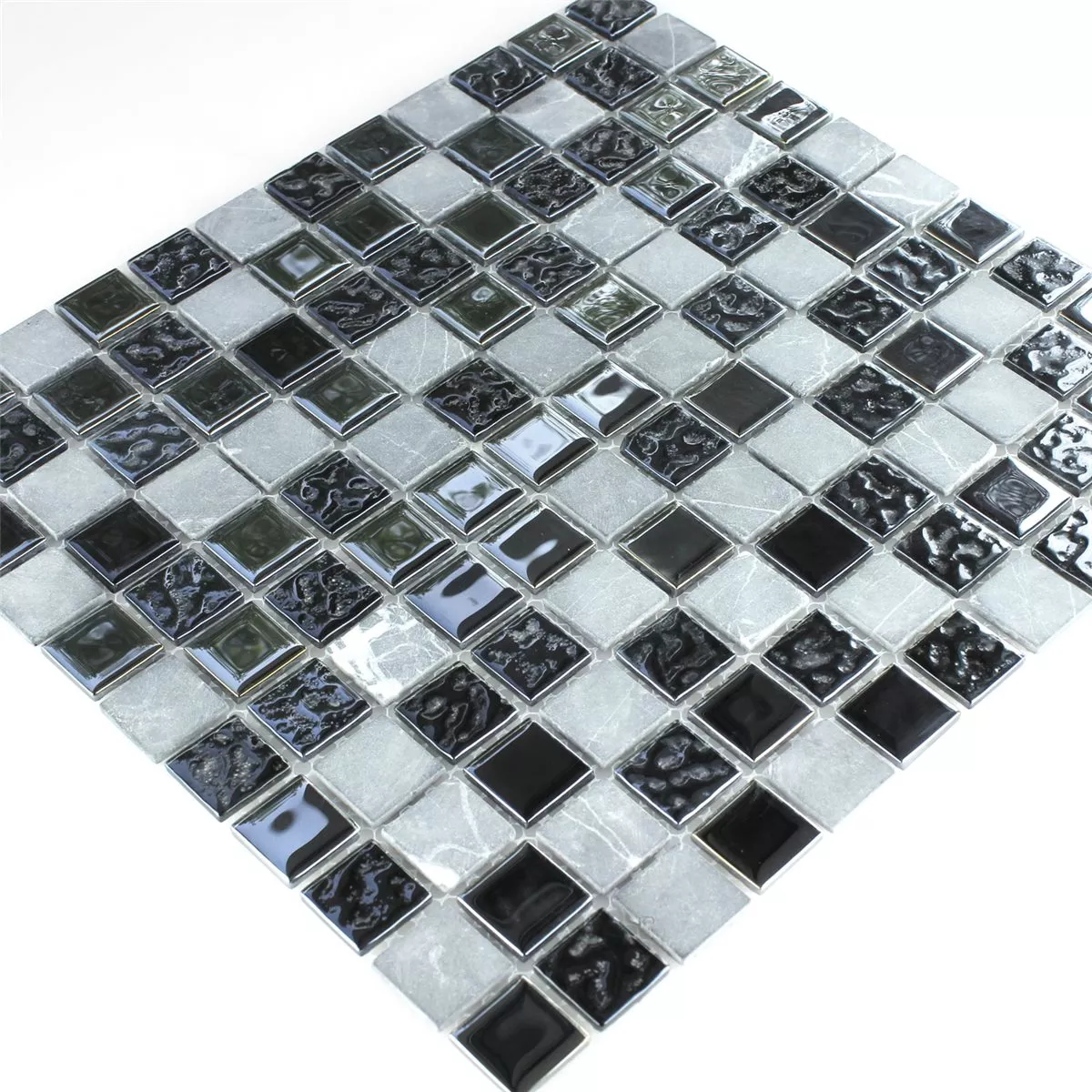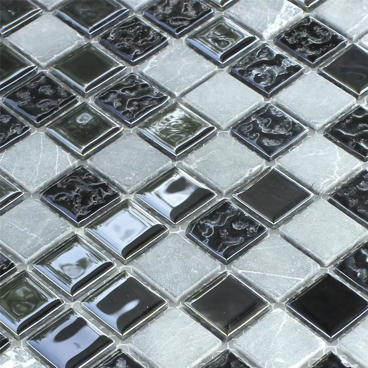 Glass Marmor Naturstein Mosaikkfliser Epsilon Svart Grå