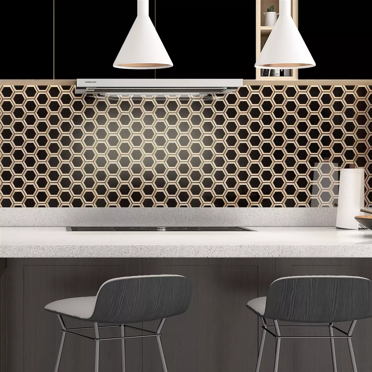 Glass Mosaikk Arnold Sekskant Svart Gull