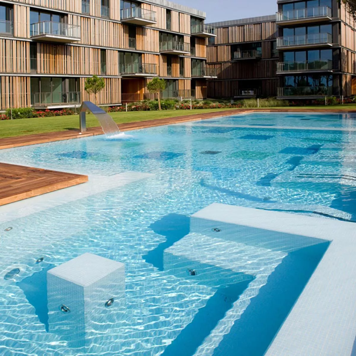 I og rundt svømmebassenger, der flisene kontinuerlig utsettes for fuktighet, gir de den nødvendige motstanden.
