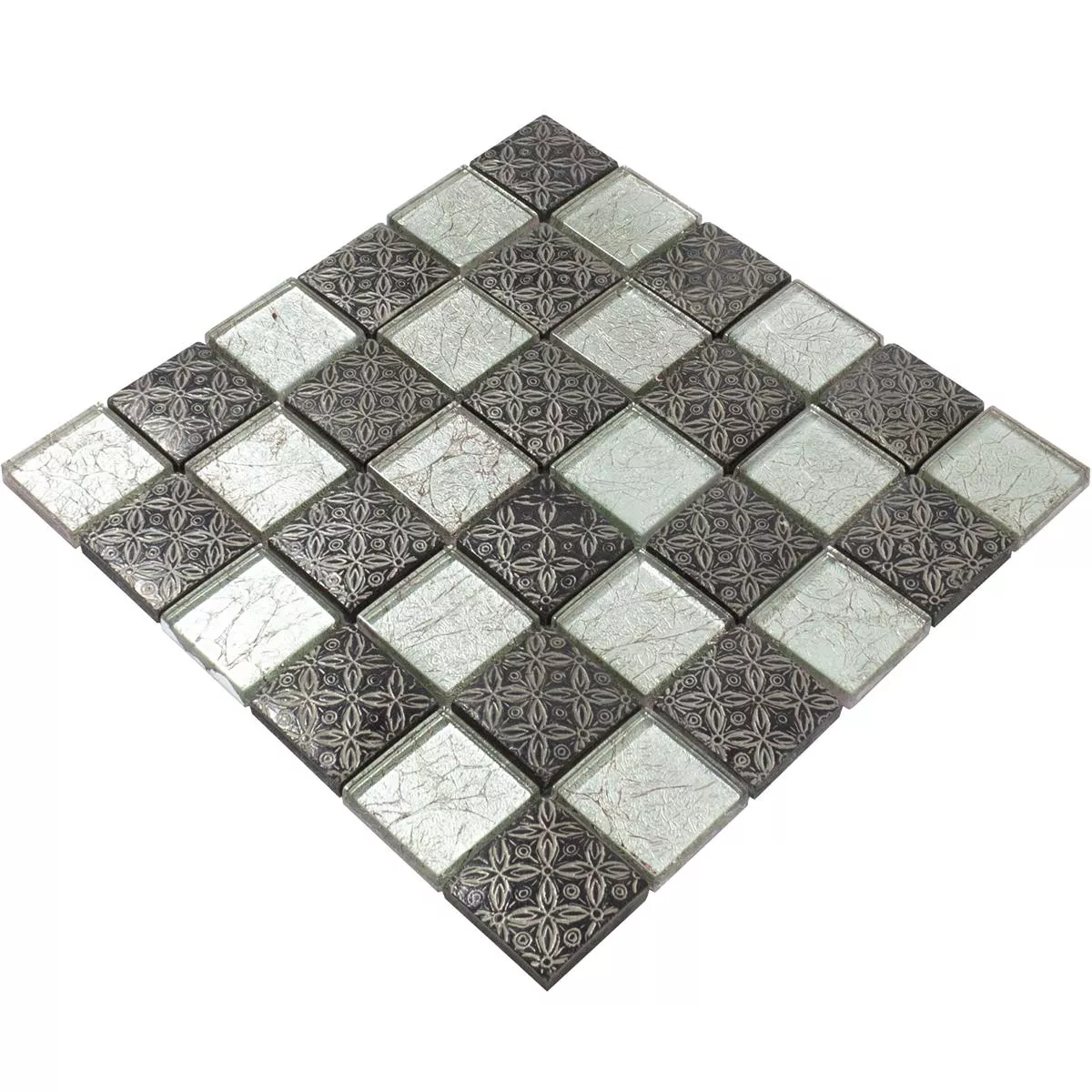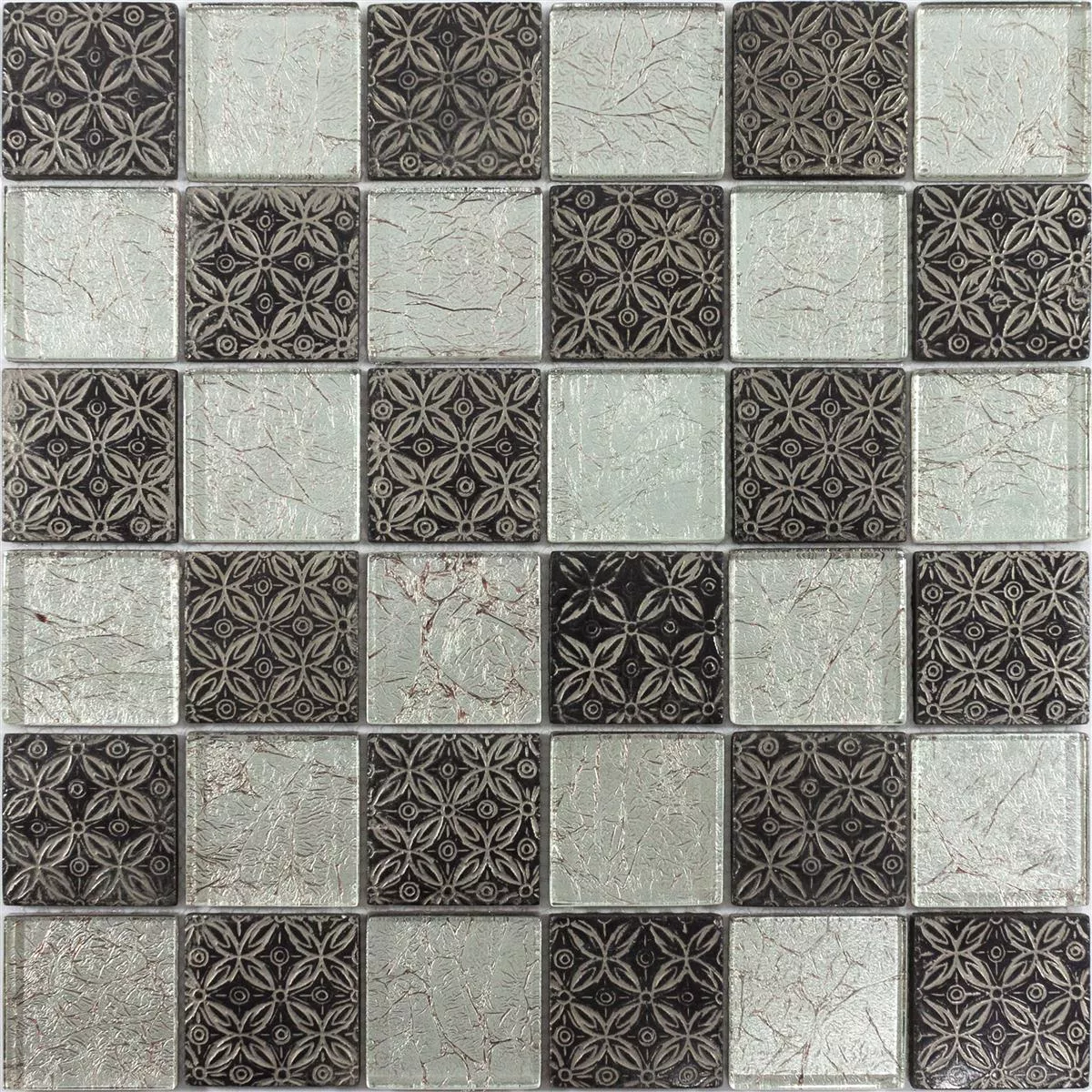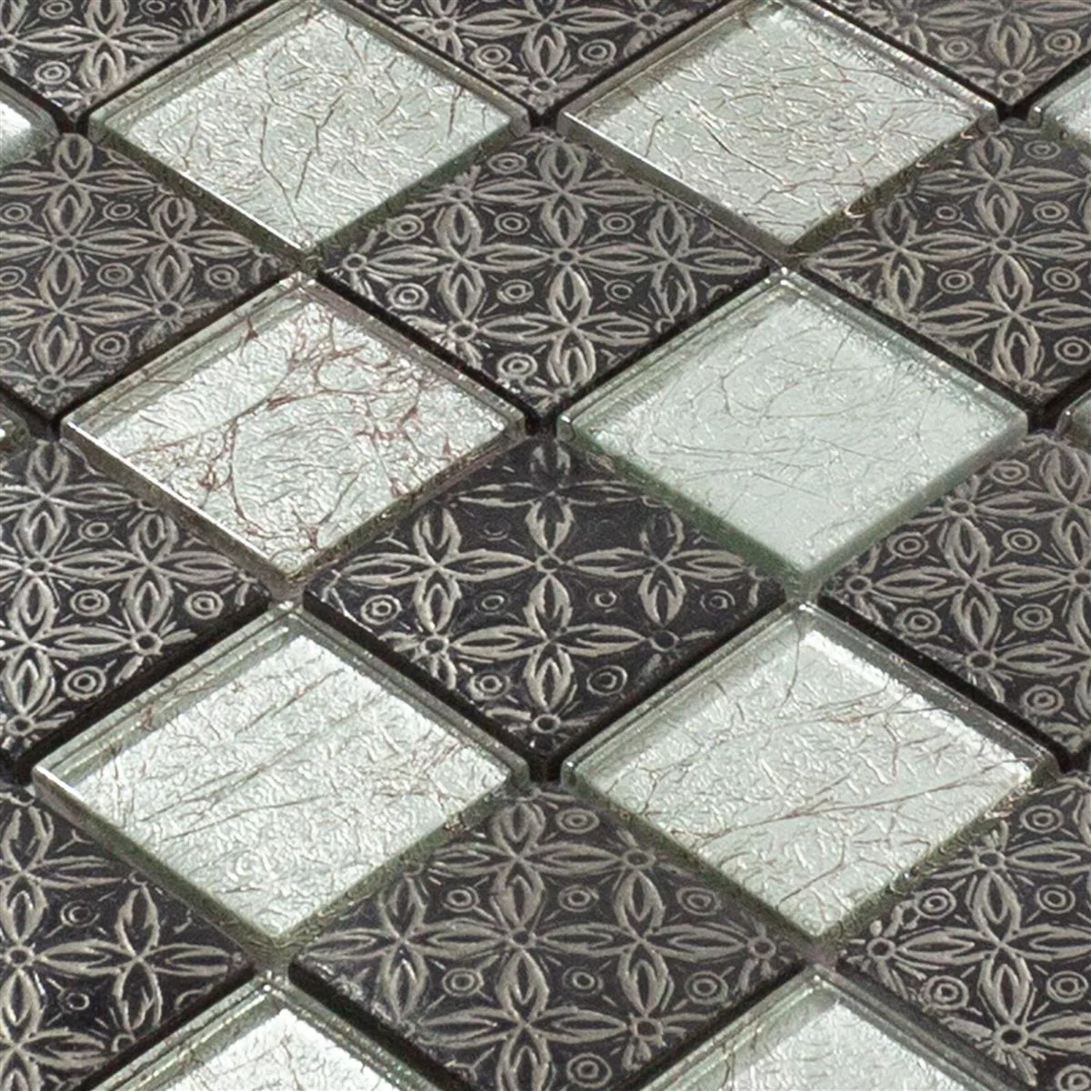 Glass Mosaikk Fliser Bayford Ornament Sølv Svart