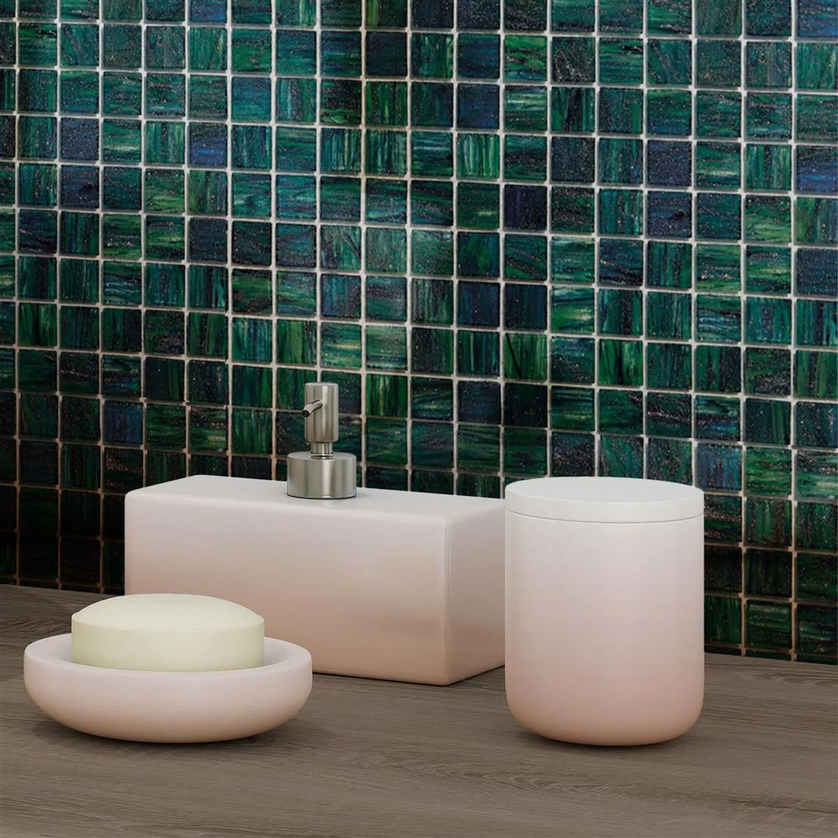 Disse allsidige flisene er egnet for bad, kjøkken, innendørsområder og dusjer og er spesielt egnet for våtrom. Gi rommet ditt en frisk blågrønn blanding med Catalina glassmosaikkfliser og opplev hvordan farger og glans fremhever hjemmet ditt.