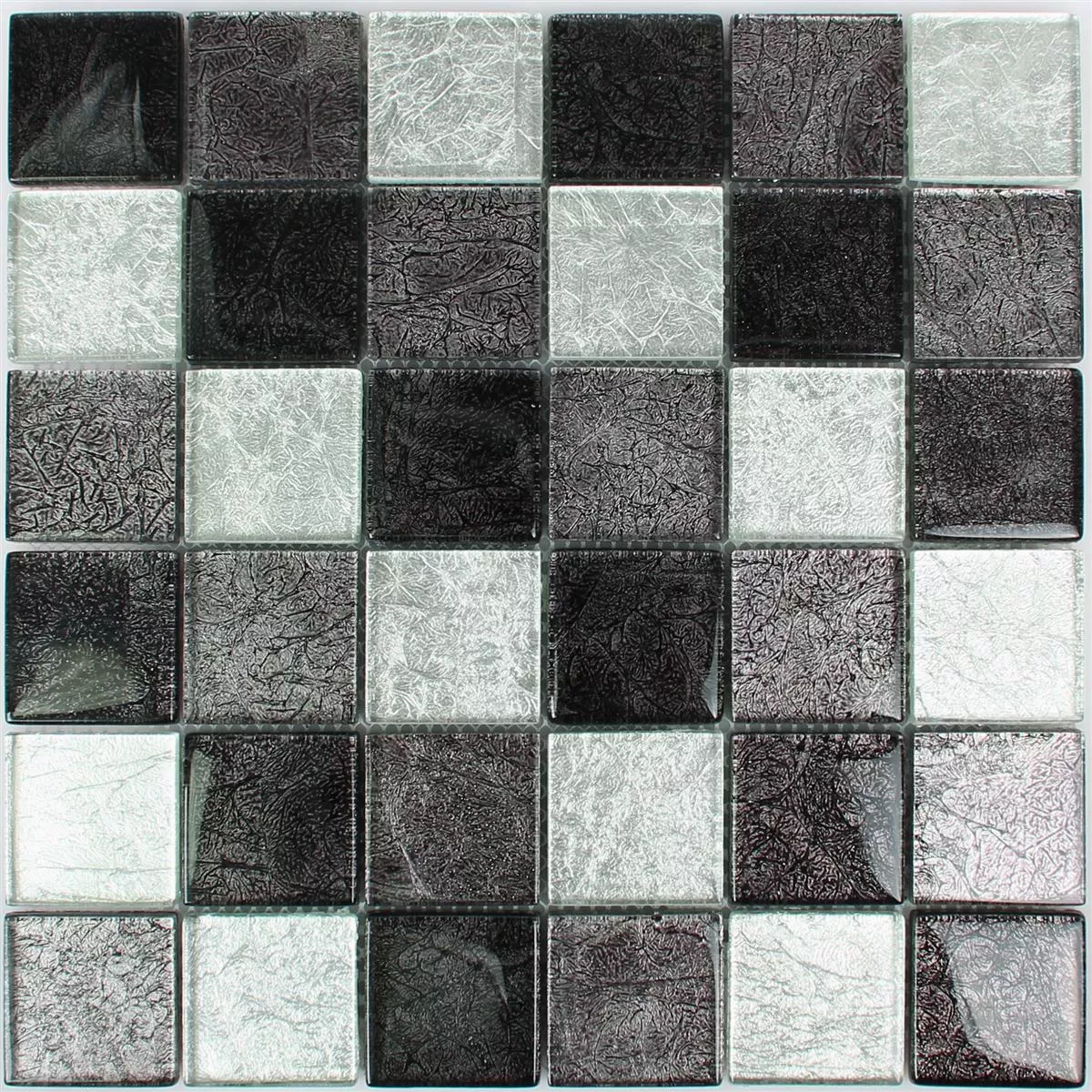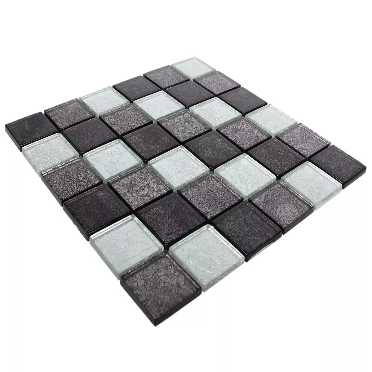 Flisene har en mattetykkelse på 8 mm og finnes i ulike stein- og komposittstørrelser. Alle som er interessert i de elegante glassmosaikkfliser kan velge mellom ruter med steinstørrelser på 23 x 23 mm, 48 x 48 mm, en blanding av 23 x 23 mm og 48 x 48 mm samt komposittstørrelser på 15 x 48 mm , 15 x 98 mm, 15 x 148 mm og 15 x 198 mm. Selve mattestørrelsen er 30 x 30 cm.