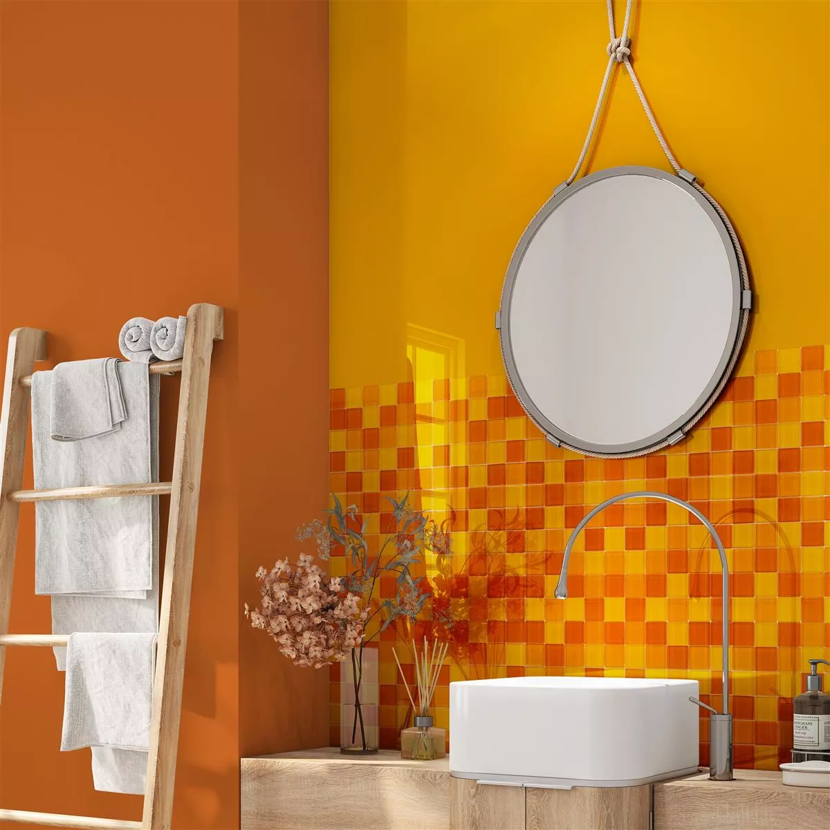 Glasgow Orange Mosaic Tile vil gi levende farger og blank finish til rommene dine og er ideell for ethvert område som trenger et slående og moderne preg. Denne flisen er ideell for vegger og gulv i bad, kjøkken, interiør og dusj.