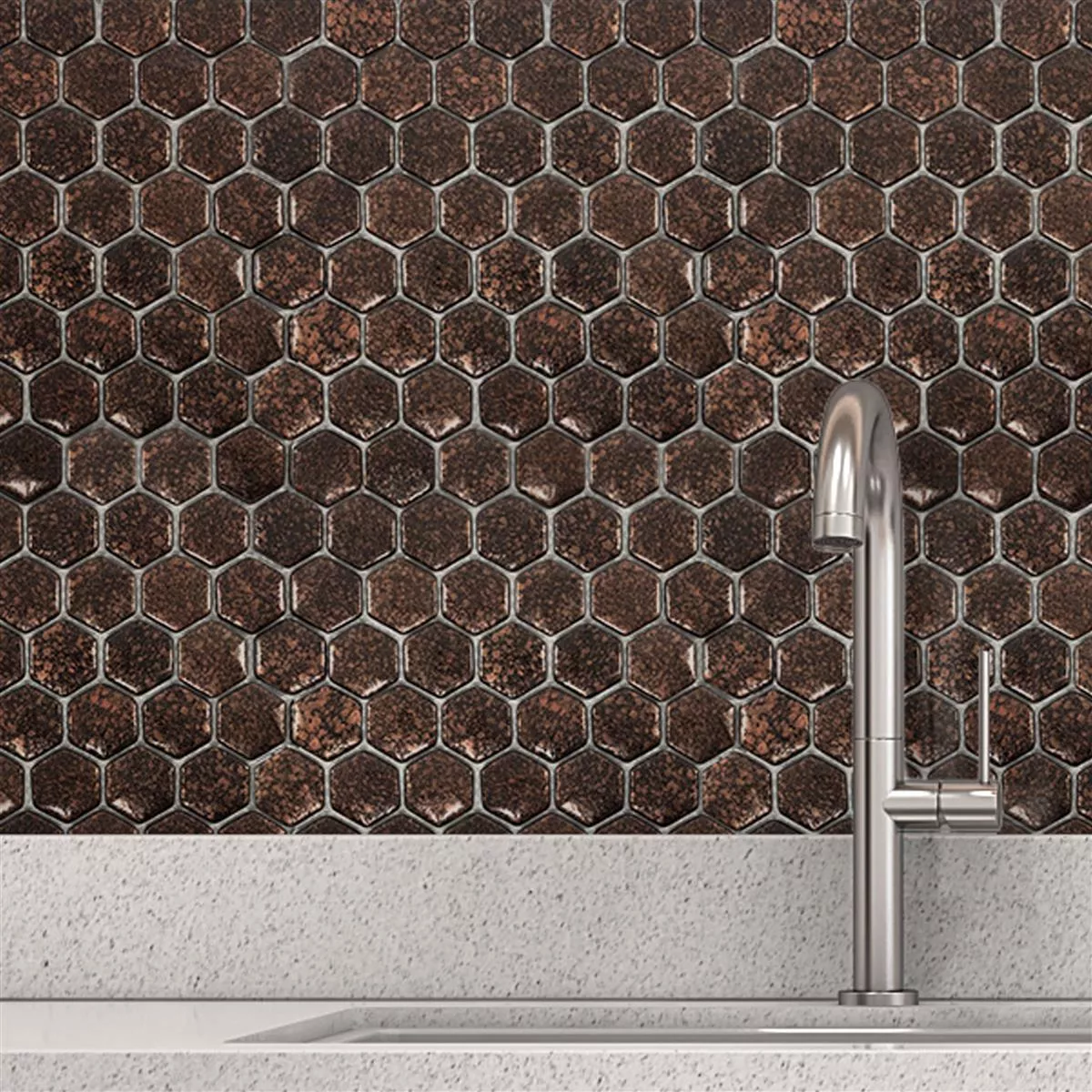 Glass Mosaikk Fliser Leopard Sekskant 3D Bronse