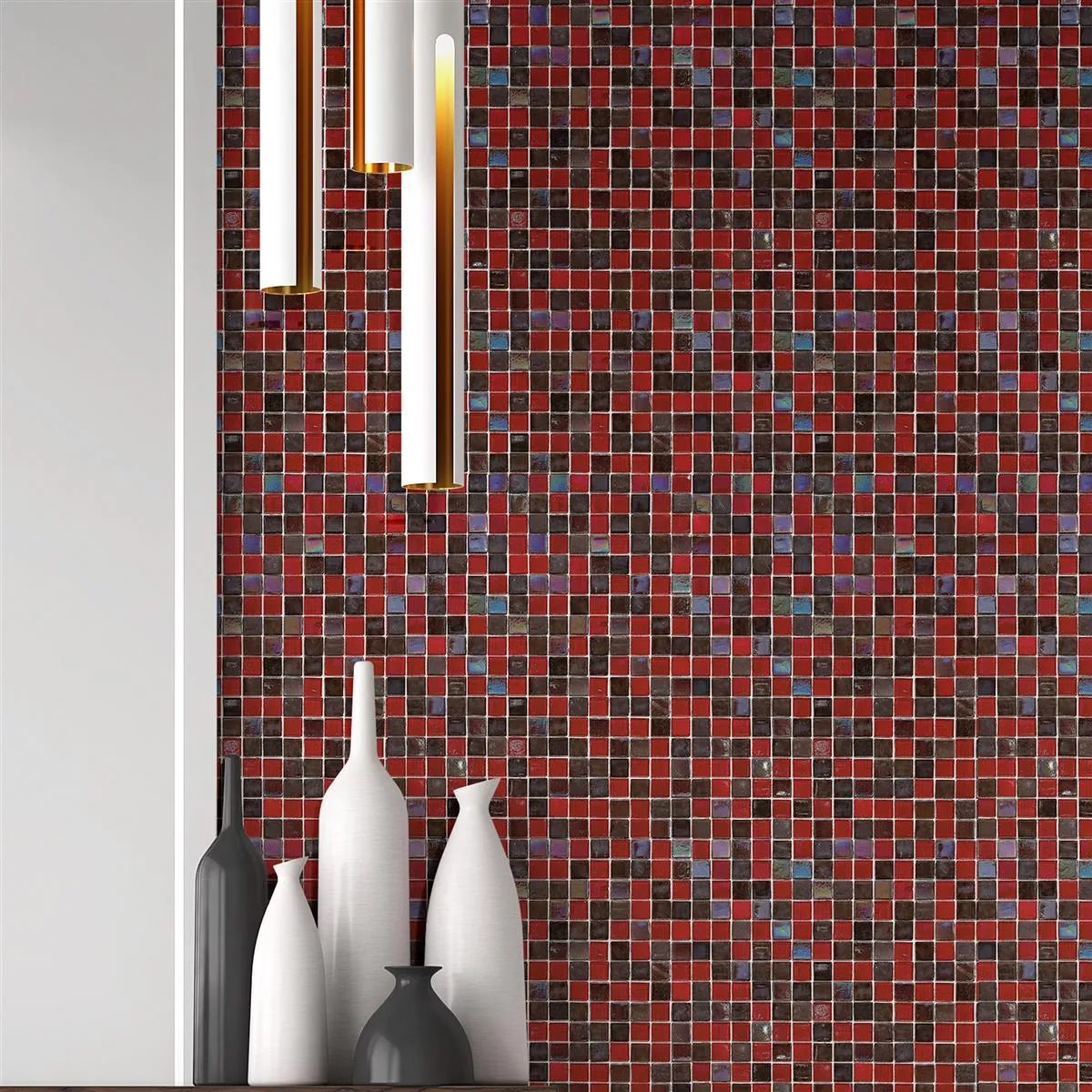 Salsa glassmosaikkfliser i de intense fargene rød og svart er et stilig tillegg til rommene dine.