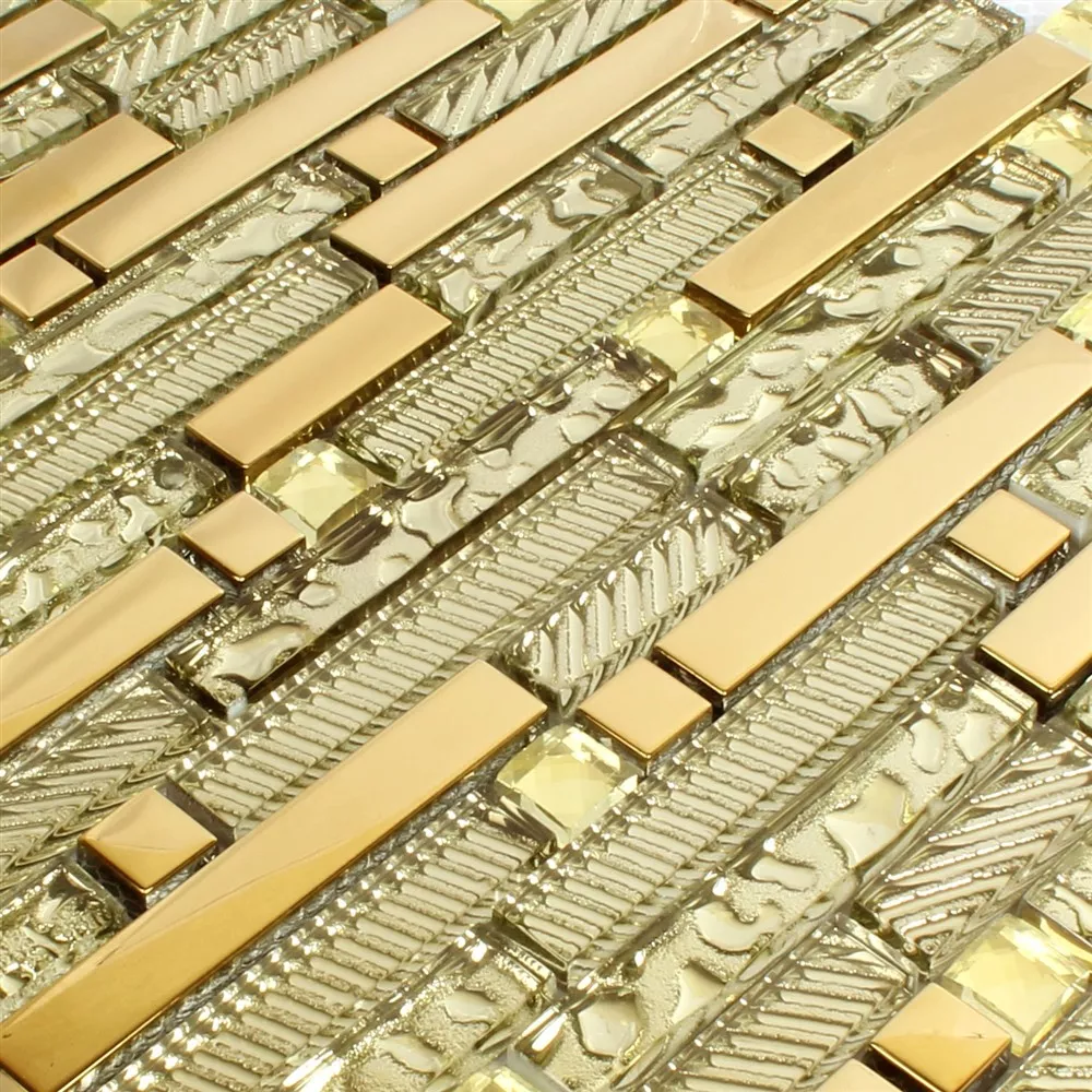 Glass Mosaikk Fliser Strukturert Gull 15x62x8mm