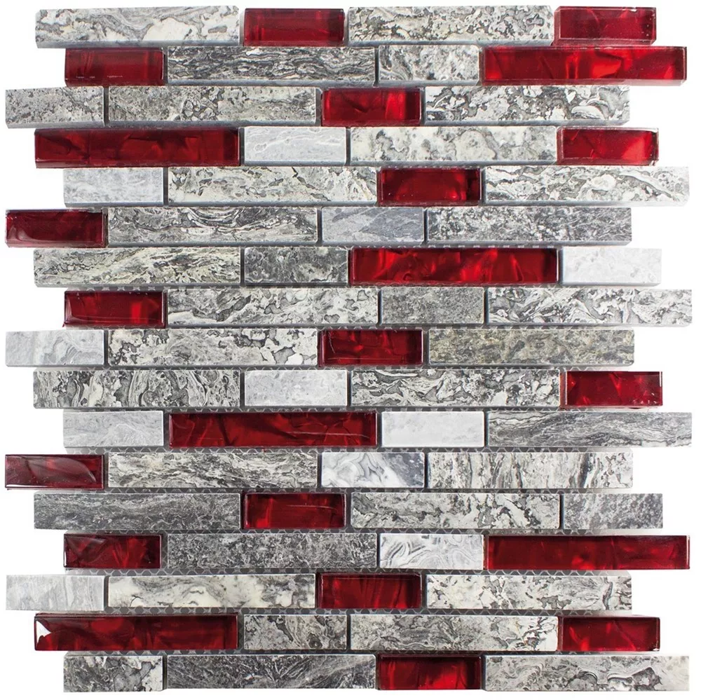 Glass Mosaikk Naturstein Fliser Manavgat Grå Rød Brick