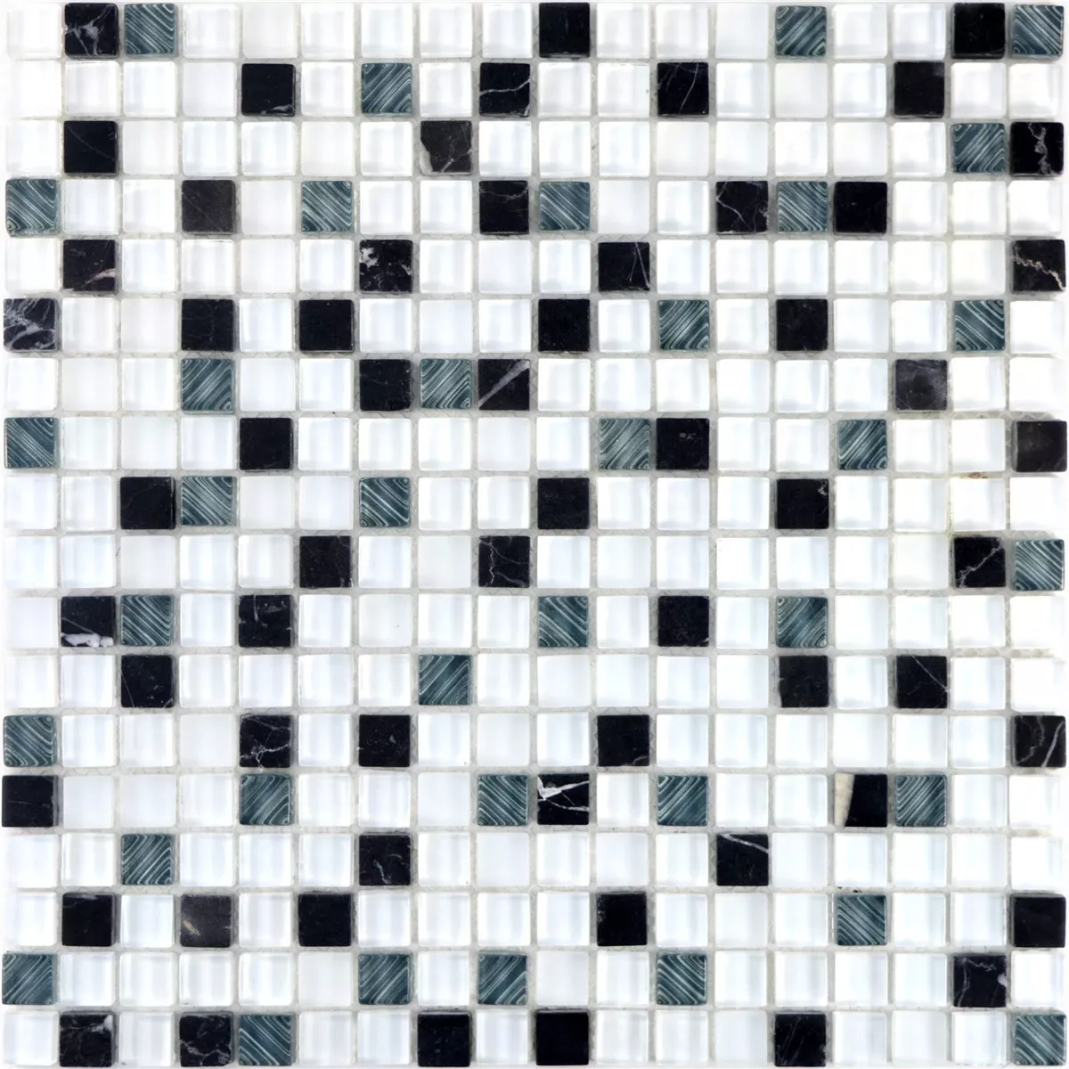 Glass Mosaikk Naturstein Fliser Nexus Super Hvit Svart