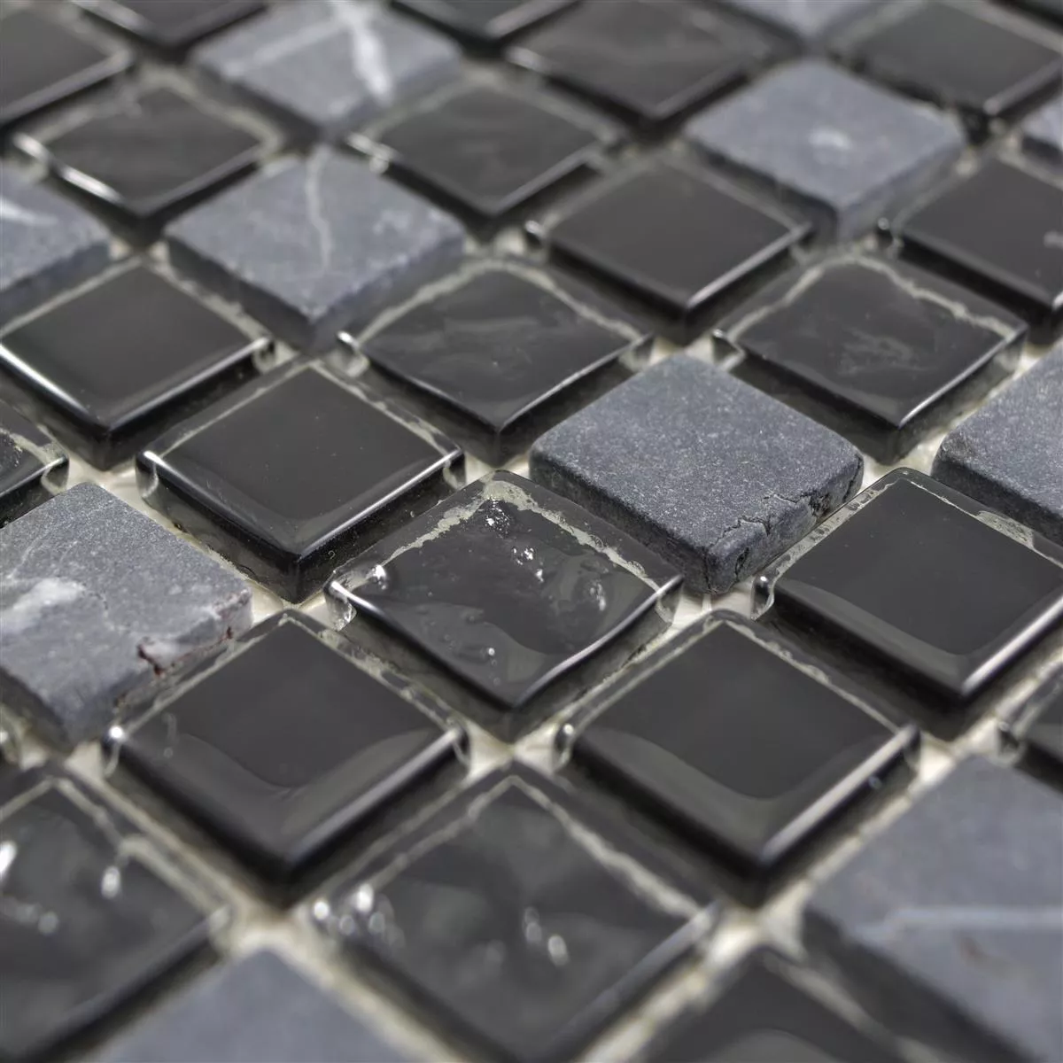 Glass Naturstein Mosaikkfliser Zekova Svart Grå
