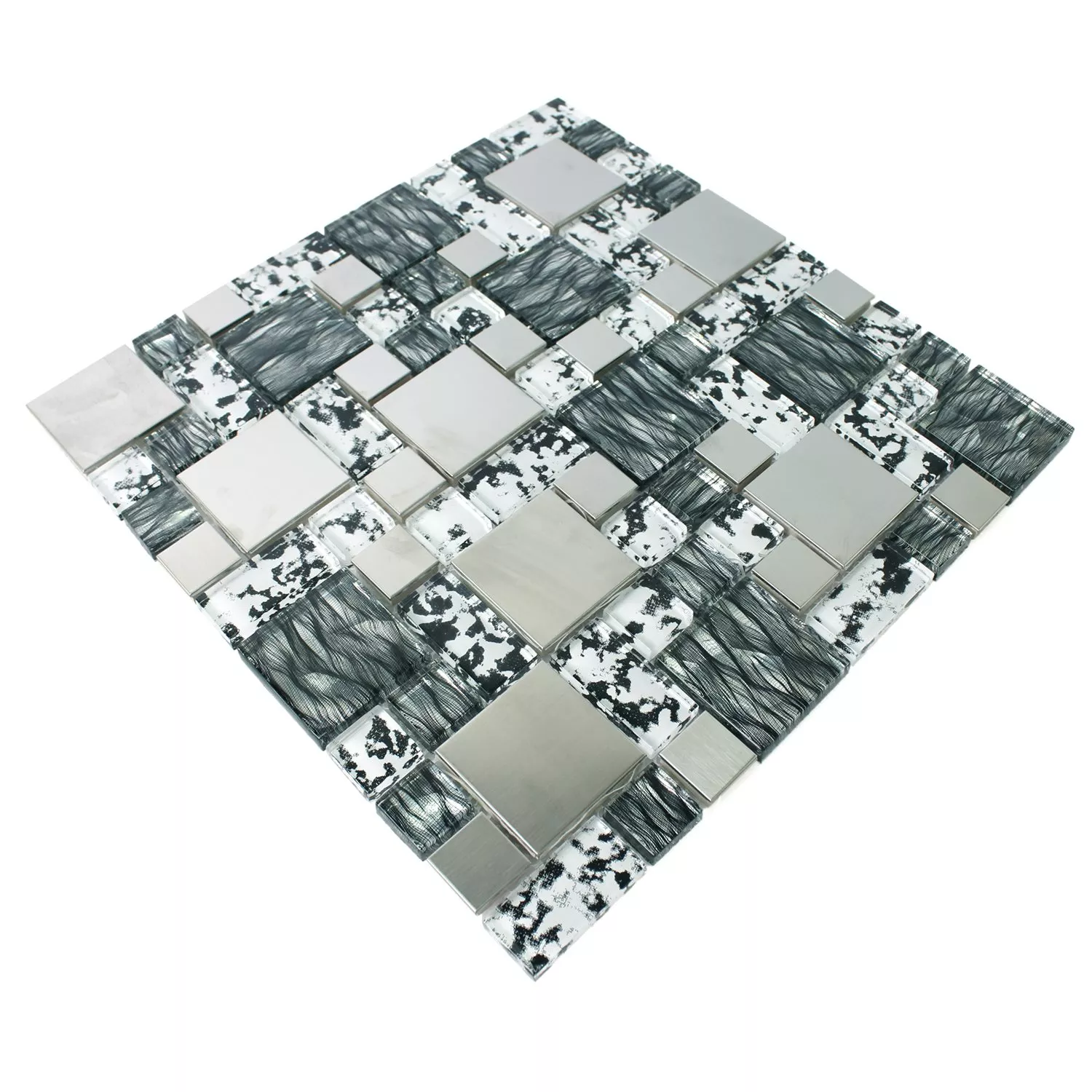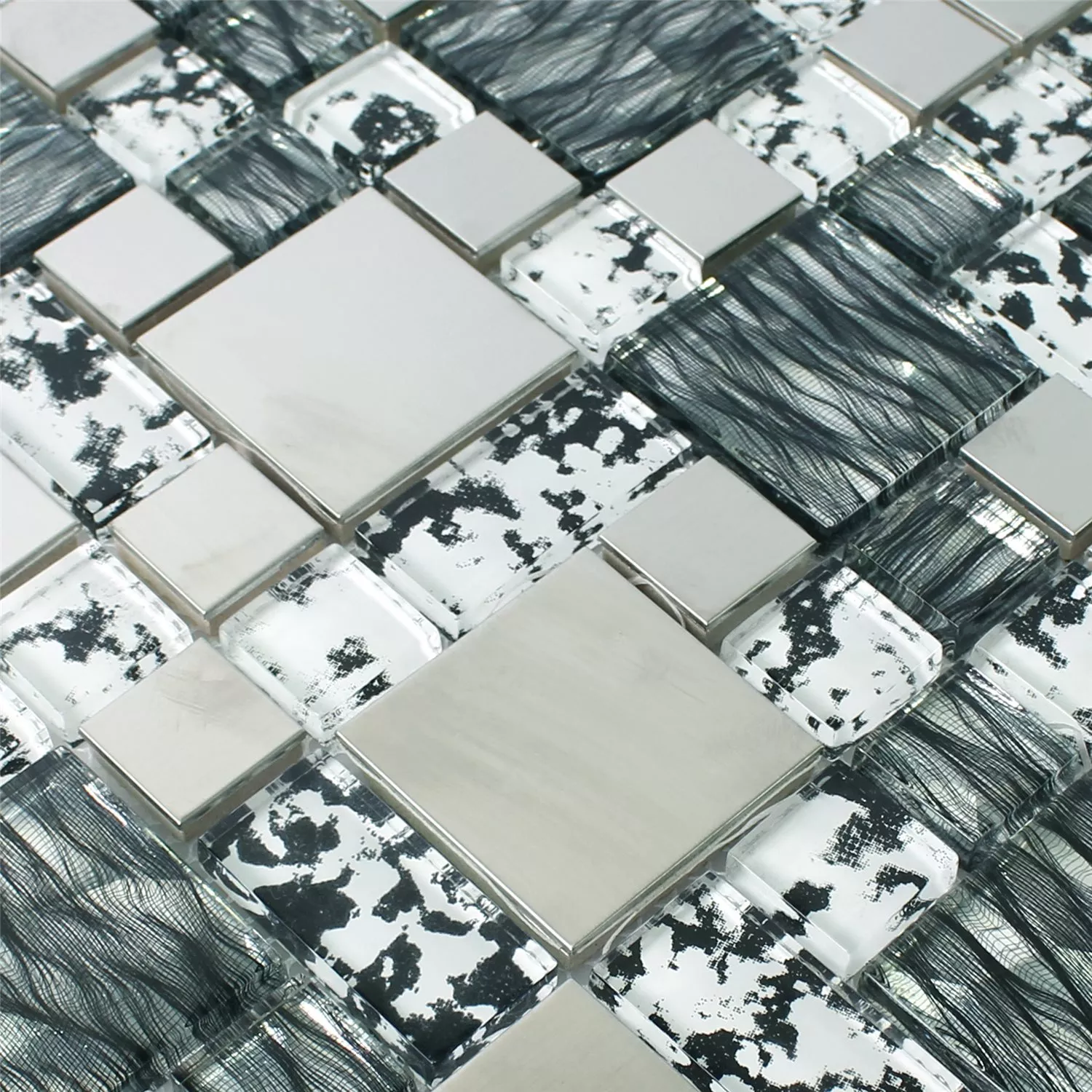 Glass Rustfritt Stål Mosaikk Rio Svart Sølv Hvit