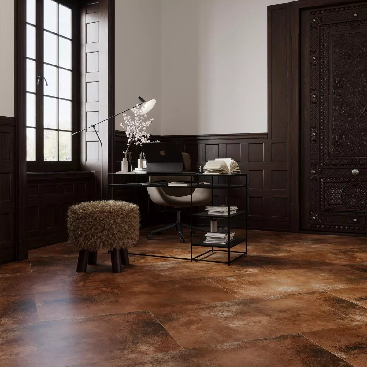 Oregon-gulvflisen i steingods i porselen kombinerer moderne design med høy funksjonalitet. Den varme brune fargen med et metallisk utseende gir hvert rom et edelt og samtidig industriell preg. Takket være den mattglaserte overflaten skapes et elegant utseende som skaper en stilig atmosfære i stuen så vel som på kjøkkenet eller badet.