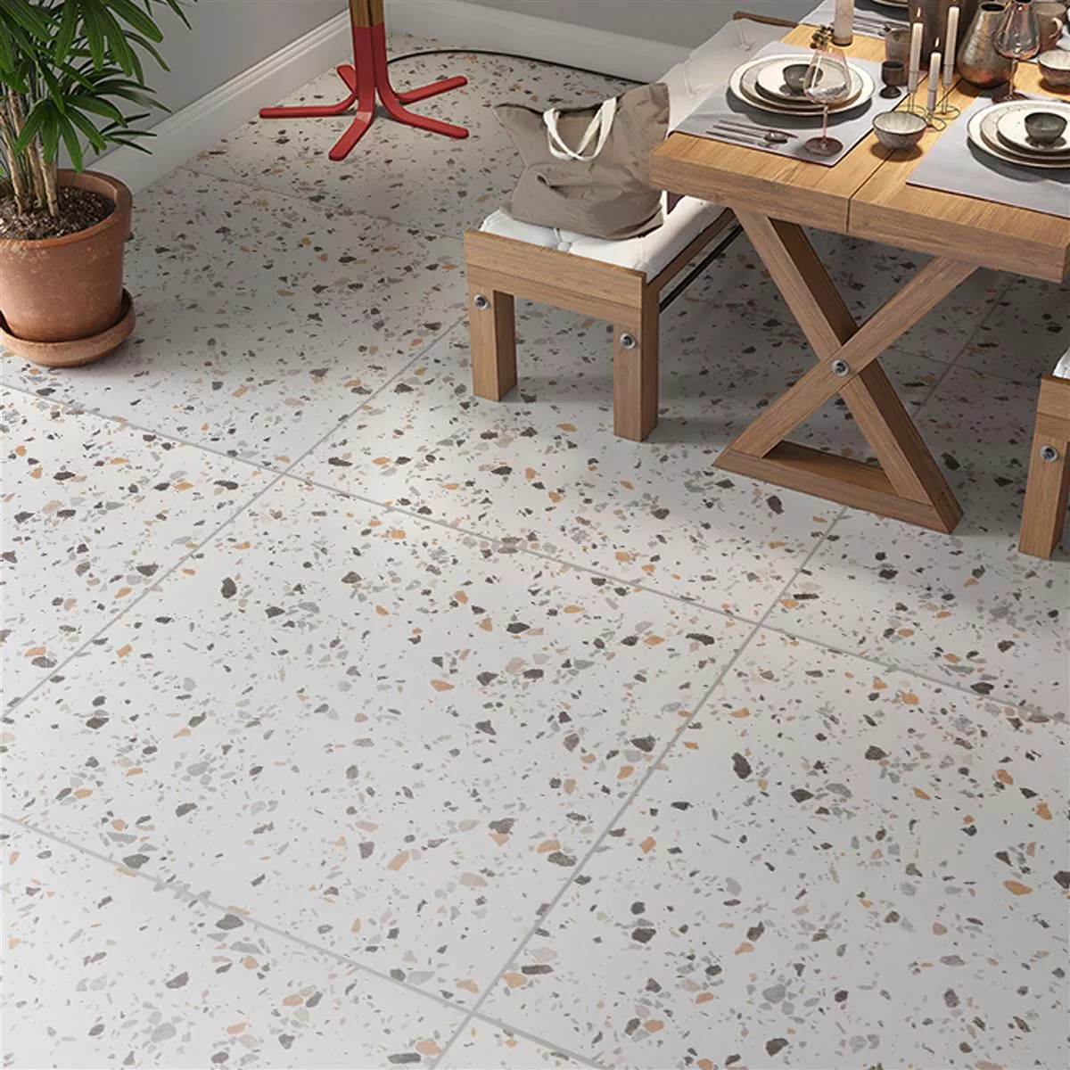 Den matte overflaten understreker ikke bare retro- og steinutseendet, men fremhever også det glaserte belegget, som ikke bare er visuelt tiltalende, men også lar det brukes sammen med gulvvarme.