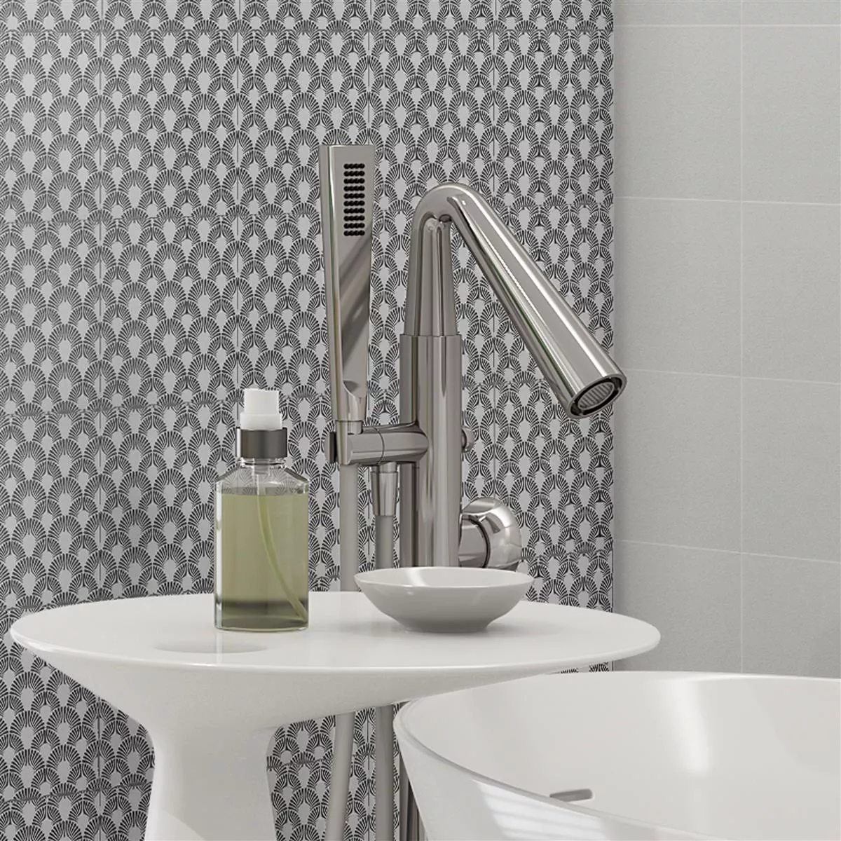 Oppdag den tidløse elegansen til våre vegg- og gulvfliser med svarte blomsterdekorer laget av glasert porselenssteintøy og gi rommene et preg av raffinement. Disse flisene kombinerer stilig design med funksjonelle egenskaper og skaper en elegant atmosfære i stuer, kjøkken, bad og dusjer.