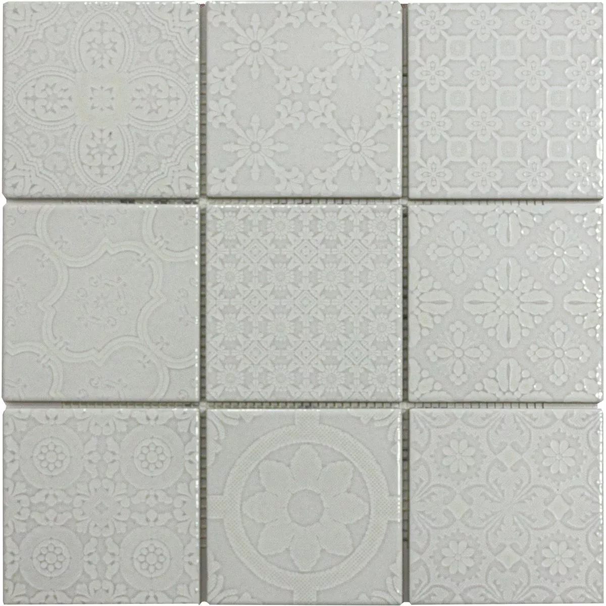 Oppdag en vellykket kombinasjon av retro chic og tidløs eleganse med våre Rivabella Relief Grey keramiske mosaikkfliser. Disse firkantede gulv- og veggflisene med en steinstørrelse på 97x97mm gir din stue, kjøkken og bad en unik karakter. Den blanke overflaten og relieffdesignet skaper et spesielt retroutseende.