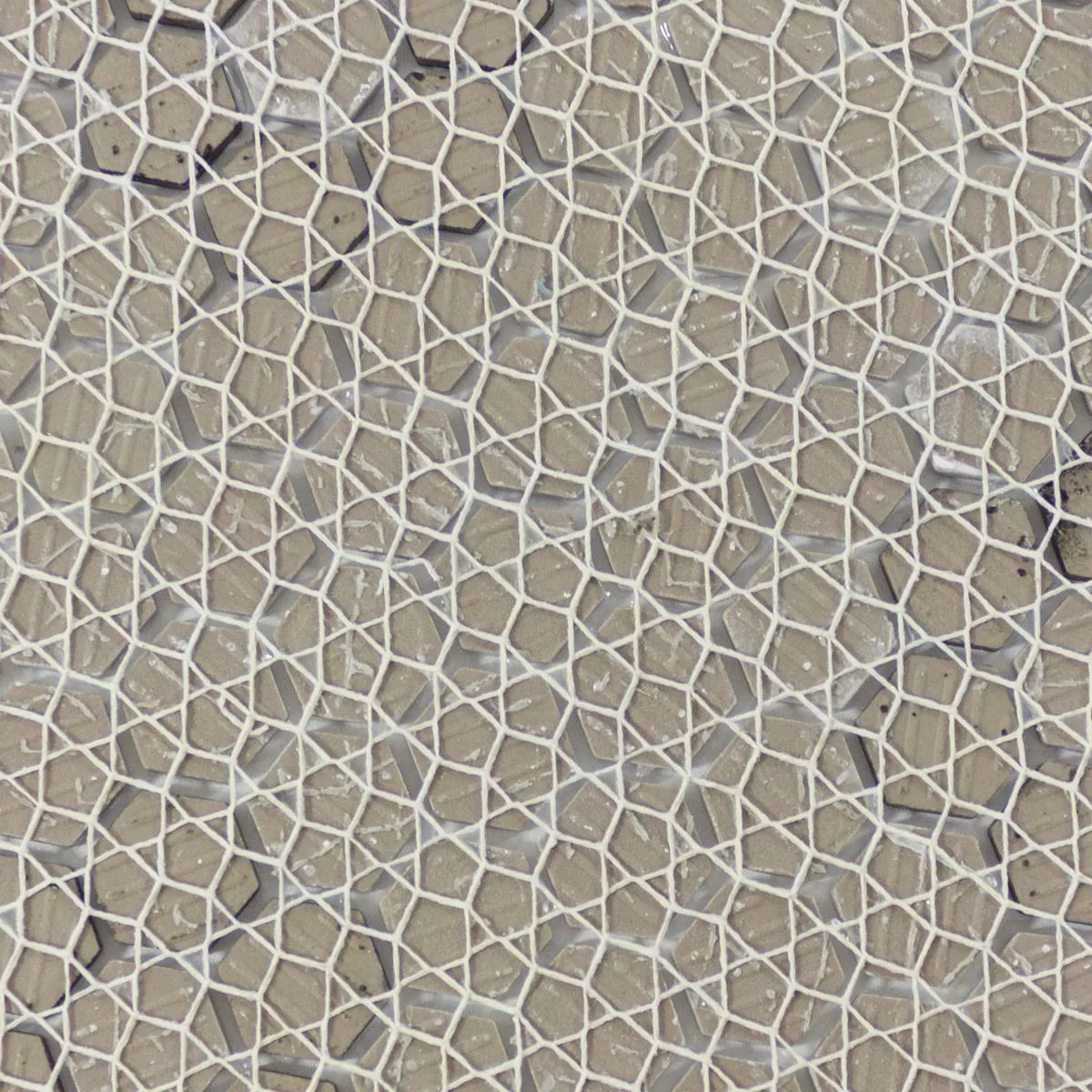 Med en attraktiv matt finish og et unikt sekskantet format gir denne flisen et tiltalende utseende. En spesiell funksjon er at den er limt til et netting klart for montering, noe som gjør monteringen enklere.
