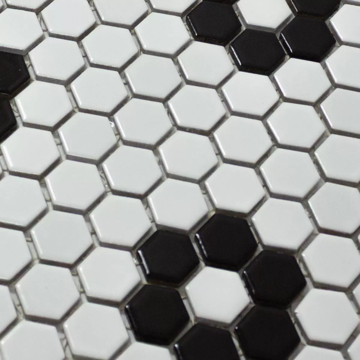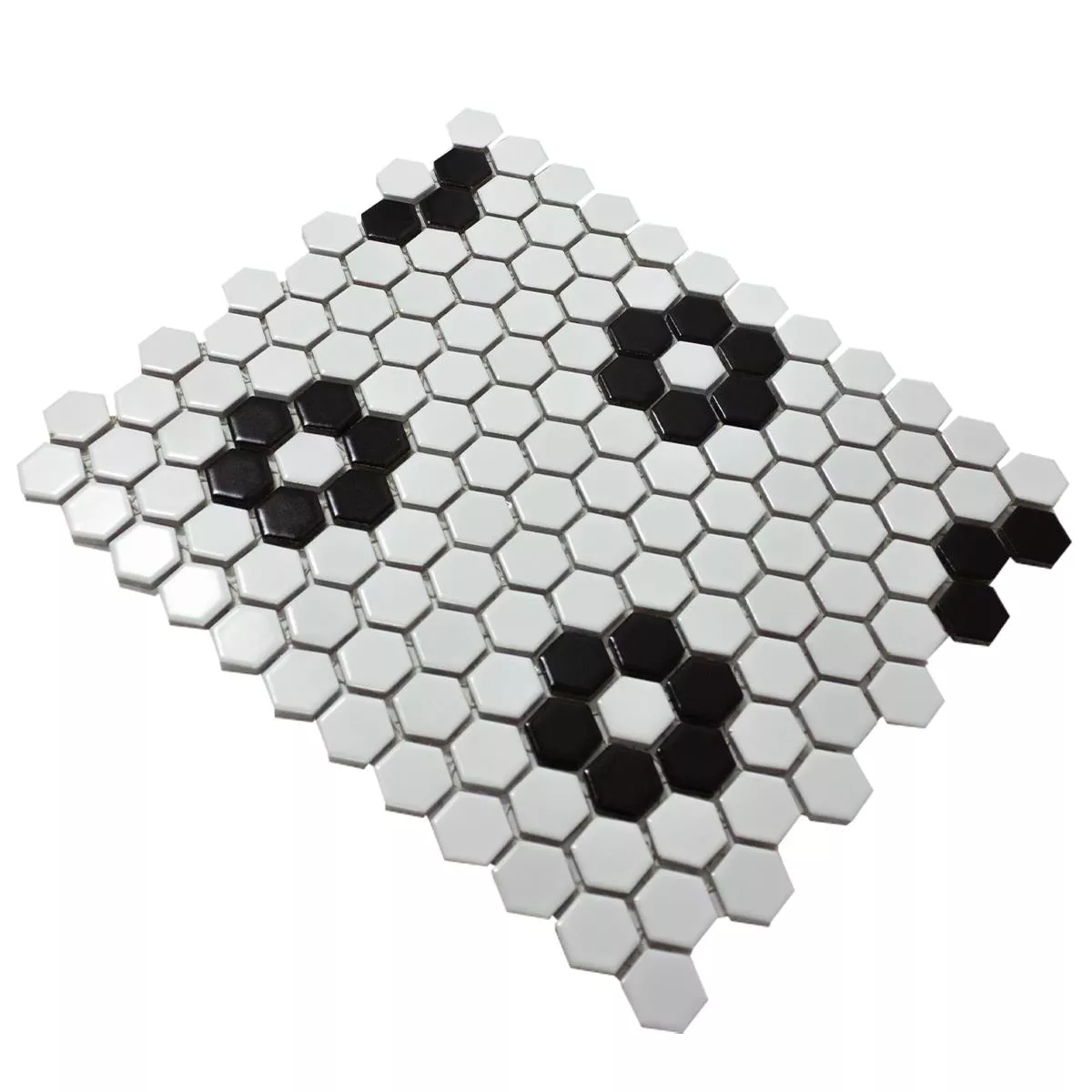 Keramikk Mosaikkfliser Sekskant Osaka Svart Hvit