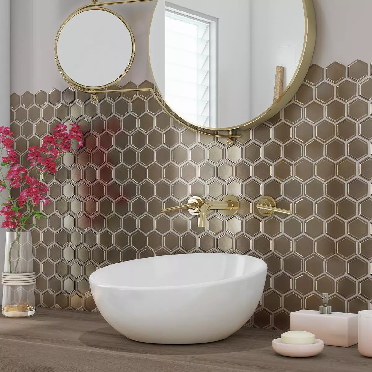 Keramikk Mosaikkfliser Stellaris Sekskant Bronse