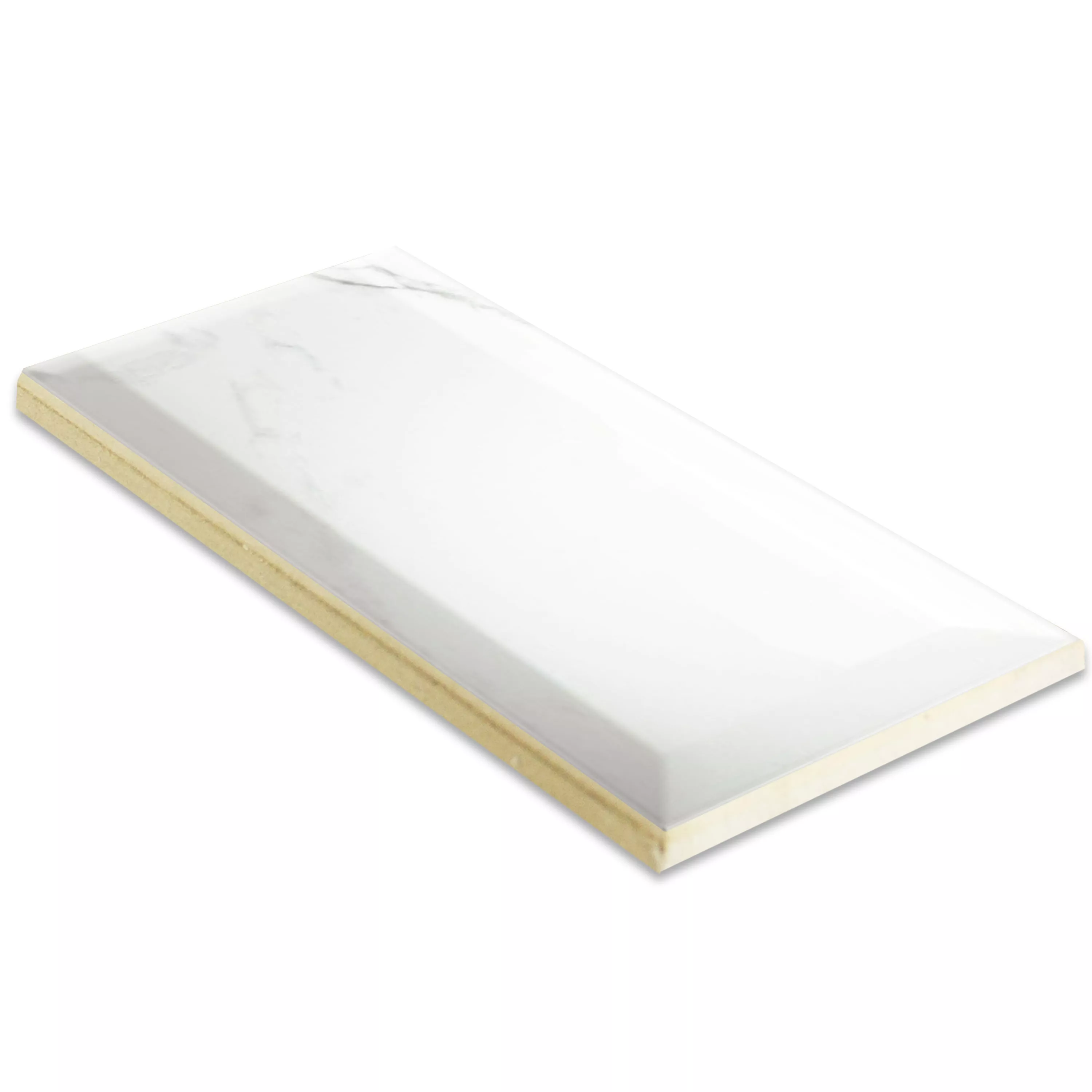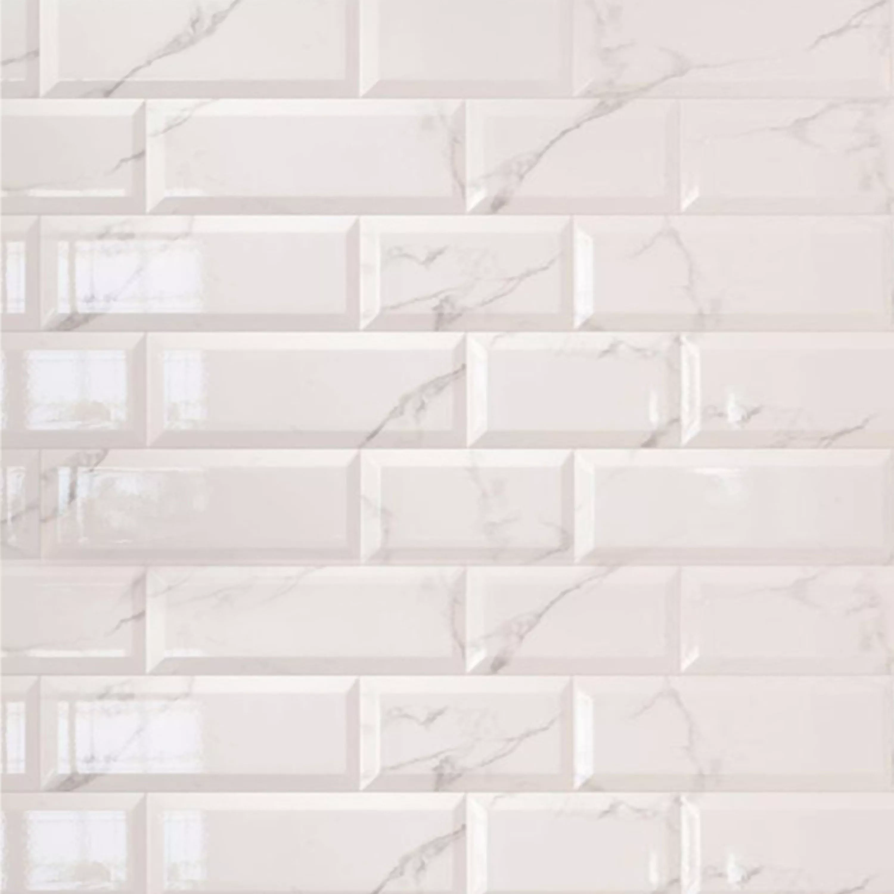 Metro Veggfliser Girona Marmor Utseende Fasett Hvit Glitrende 10x20cm