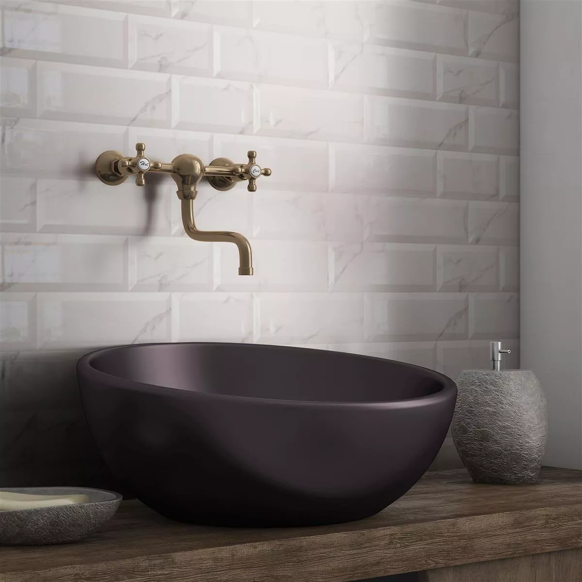 Metro veggflisene Girona marmor ser glanset ut med fasetter er en ekte perle for enhver vegg og imponerer med sitt luksuriøse marmorutseende og sofistikerte fasettstruktur.