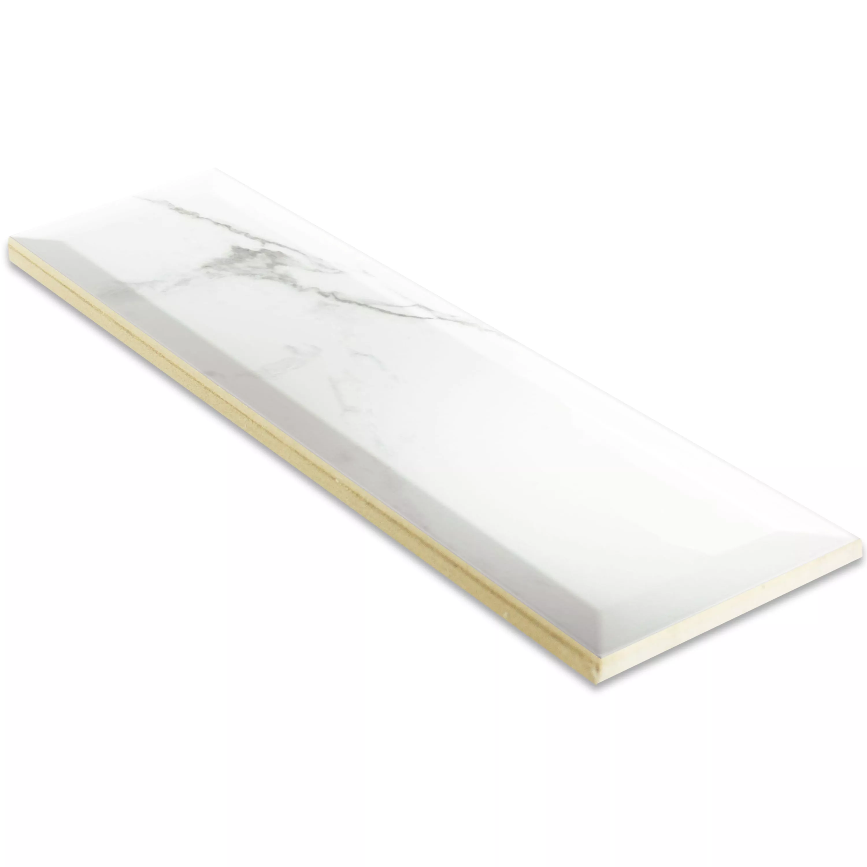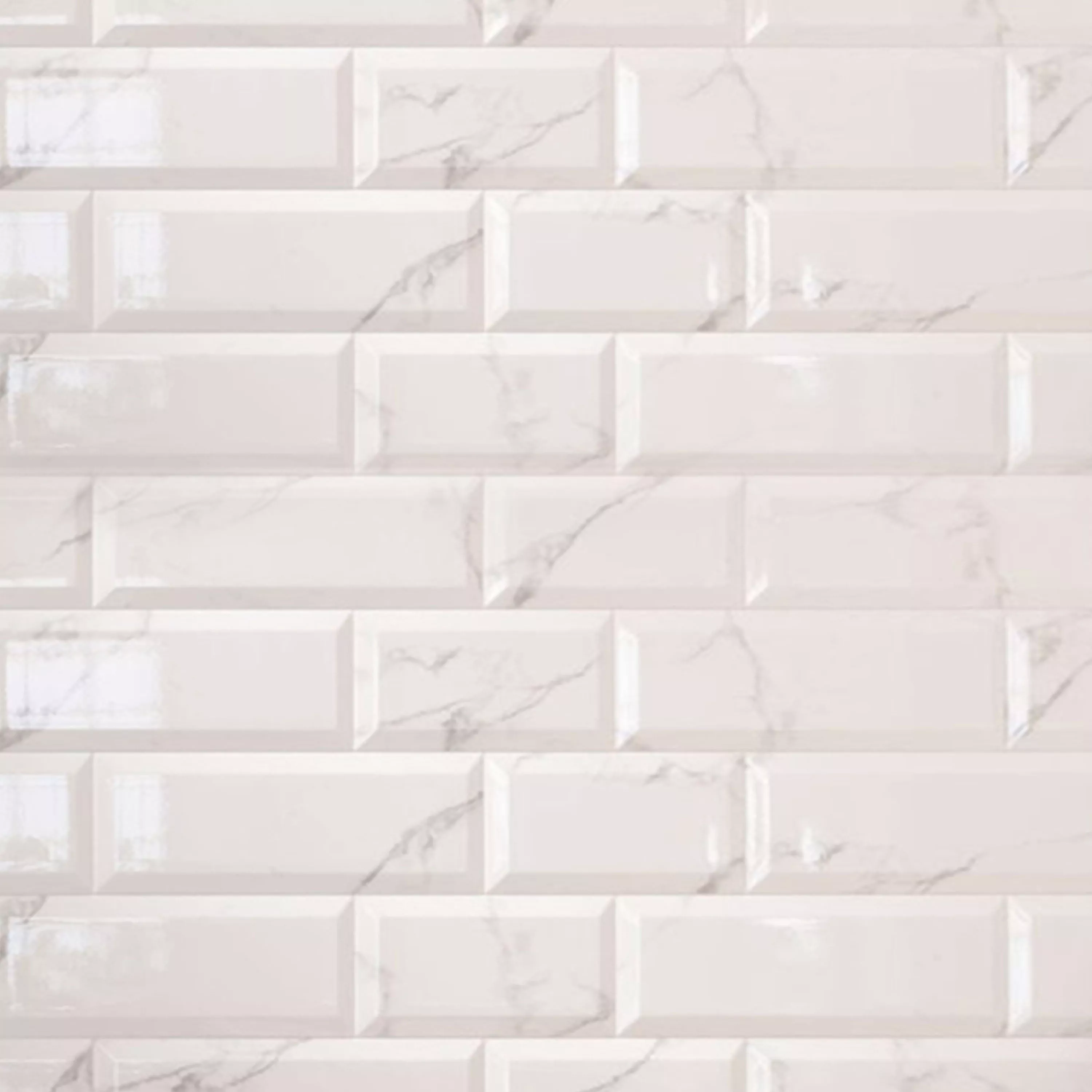 Metro Veggfliser Girona Marmor Utseende Fasett Hvit Glitrende 10x30cm
