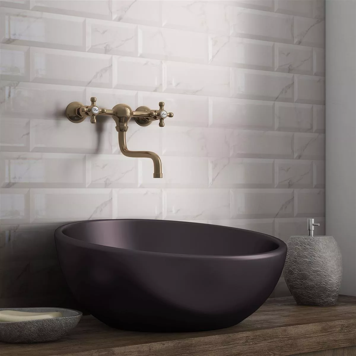 Metro veggflisene Girona marmor ser fasettblanke ut, kombinerer klassisk design med moderne funksjonalitet og er en berikelse for ethvert interiør.