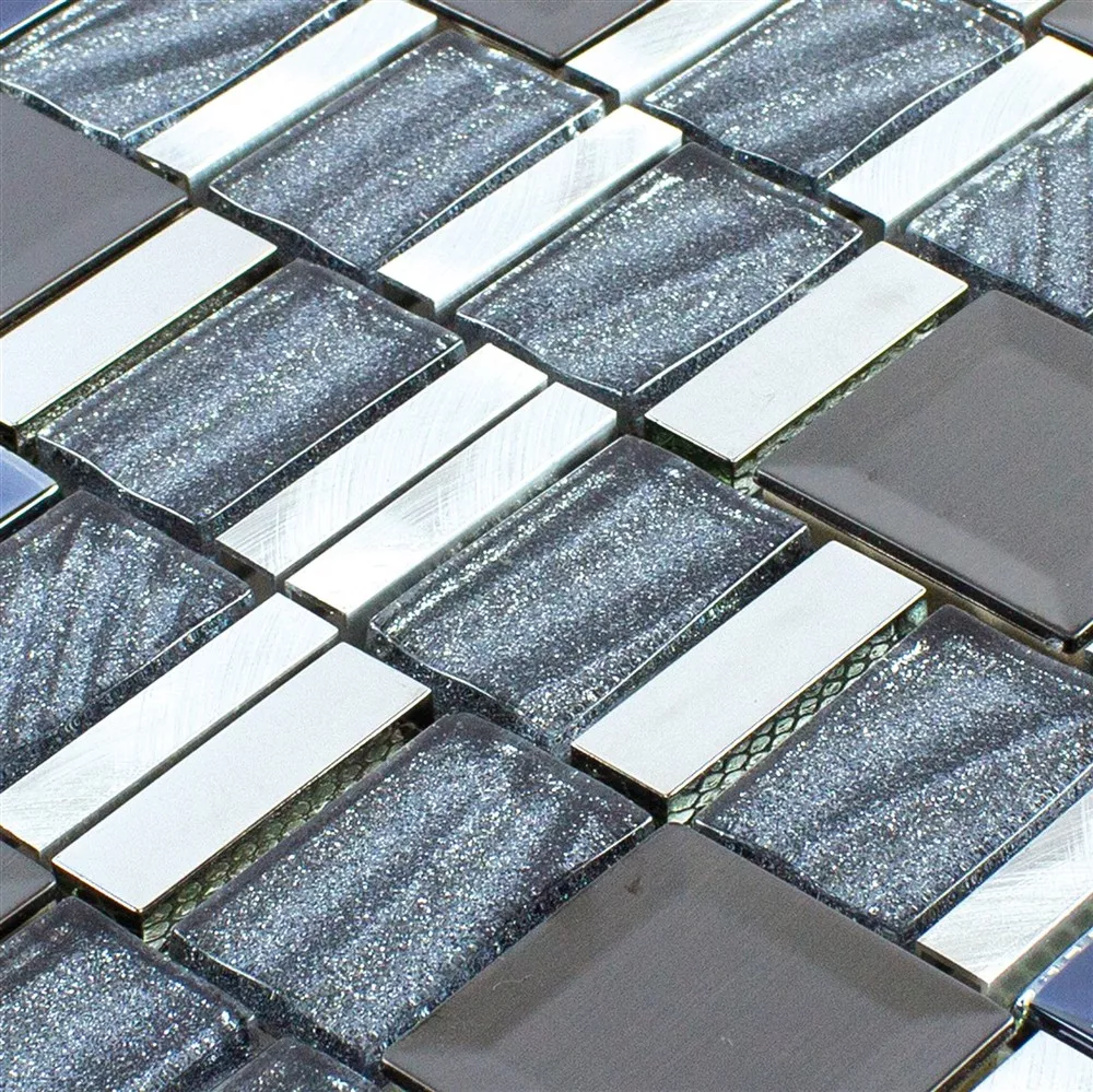 Mønster fra Glass Aluminium Mosaikk LaCrosse Svart Grå Sølv