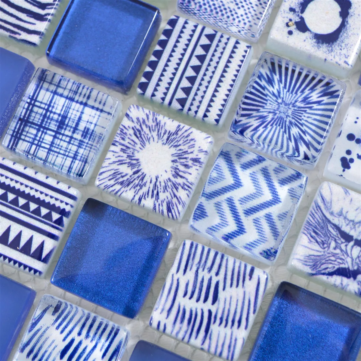 Mønster fra Glass Mosaikk Fliser Cornelia Retro Optikk Blå