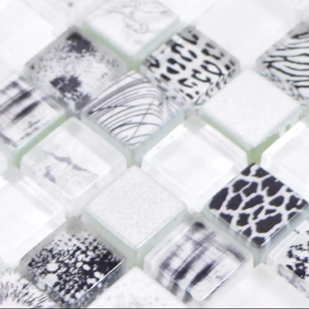 Mønster fra Glass Mosaikk Fliser Cornelia Retro Optikk Super Hvit