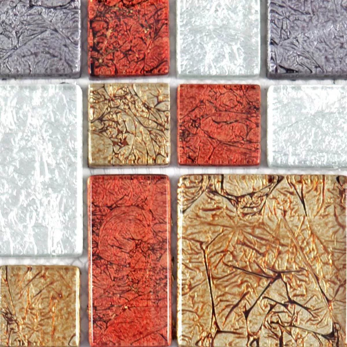 Mønster fra Glass Mosaikk Fliser Curlew Rød Brun Sølv ix