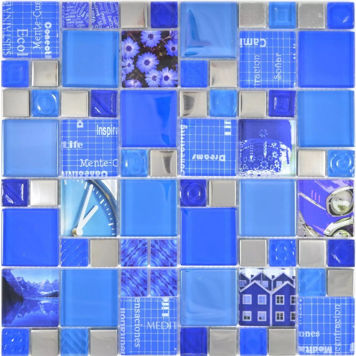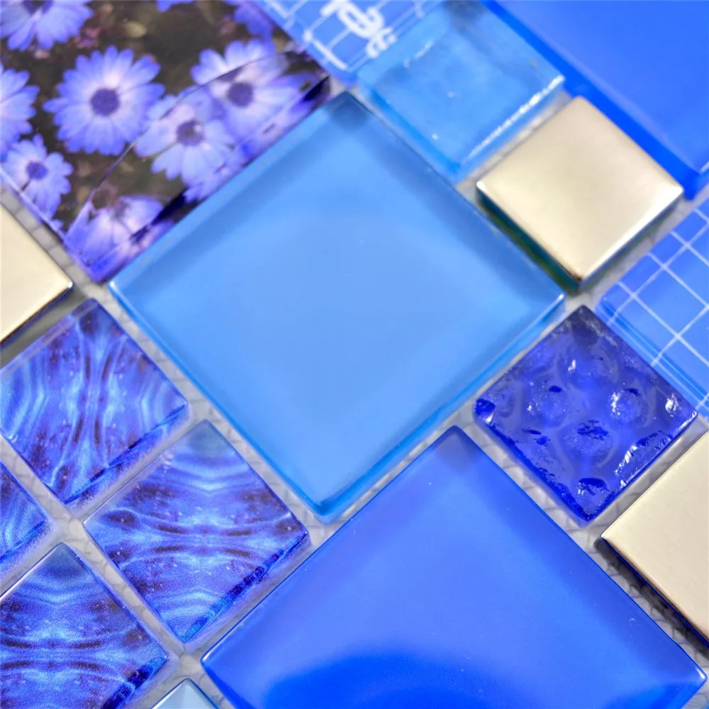 Mønster fra Glass Mosaikk Fliser Nemesis Blå Sølv
