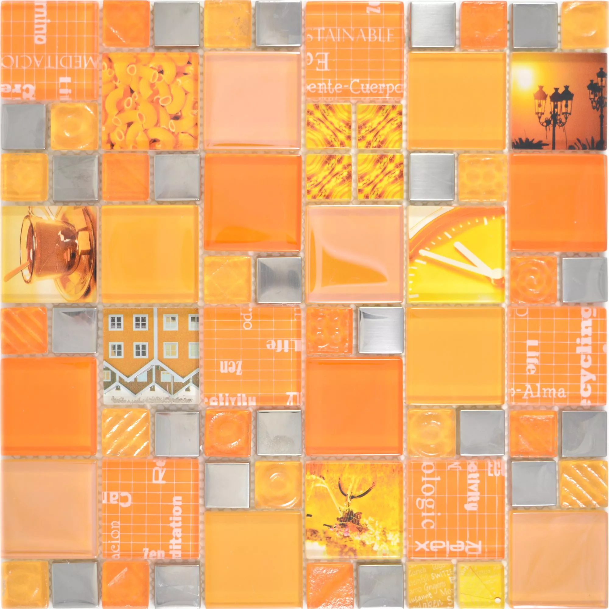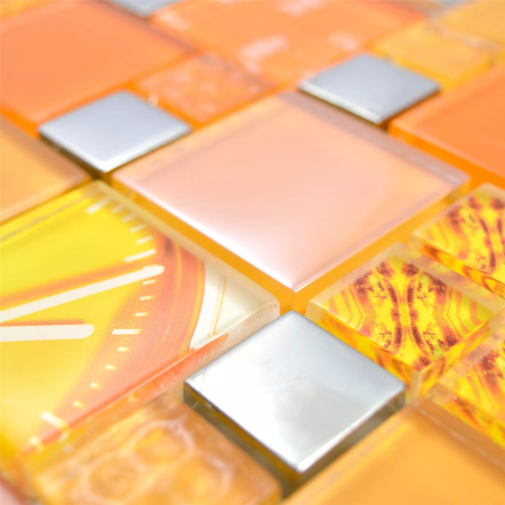 Mønster fra Glass Mosaikk Fliser Nemesis Oransje Sølv