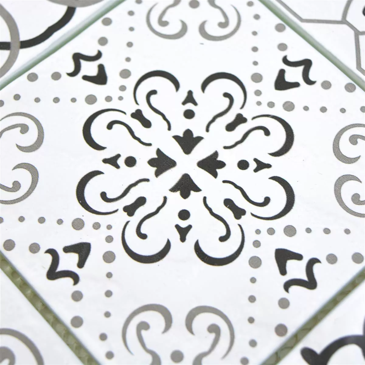 Mønster fra Glass Mosaikk Fliser Starlite Retro Svart Hvit 98