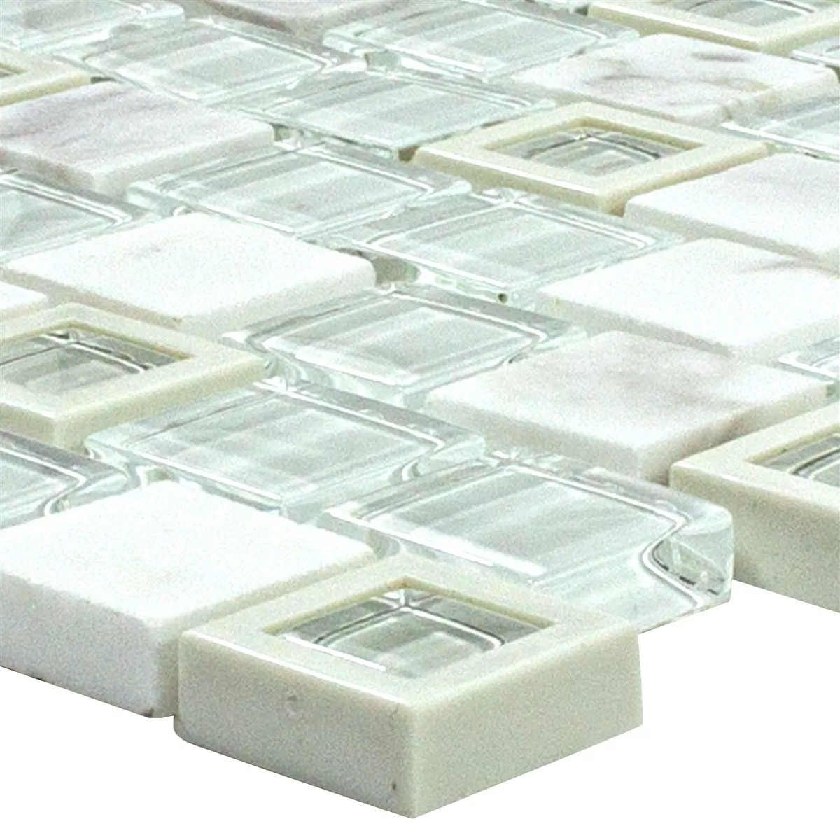 Mønster fra Glass Plast Natursteinmosaikk Lunaquell Hvit