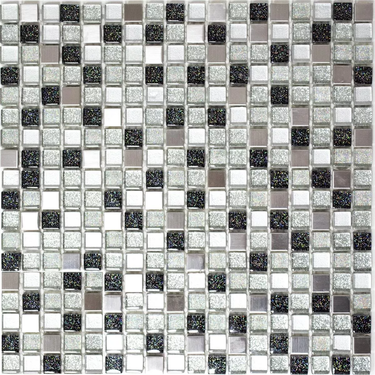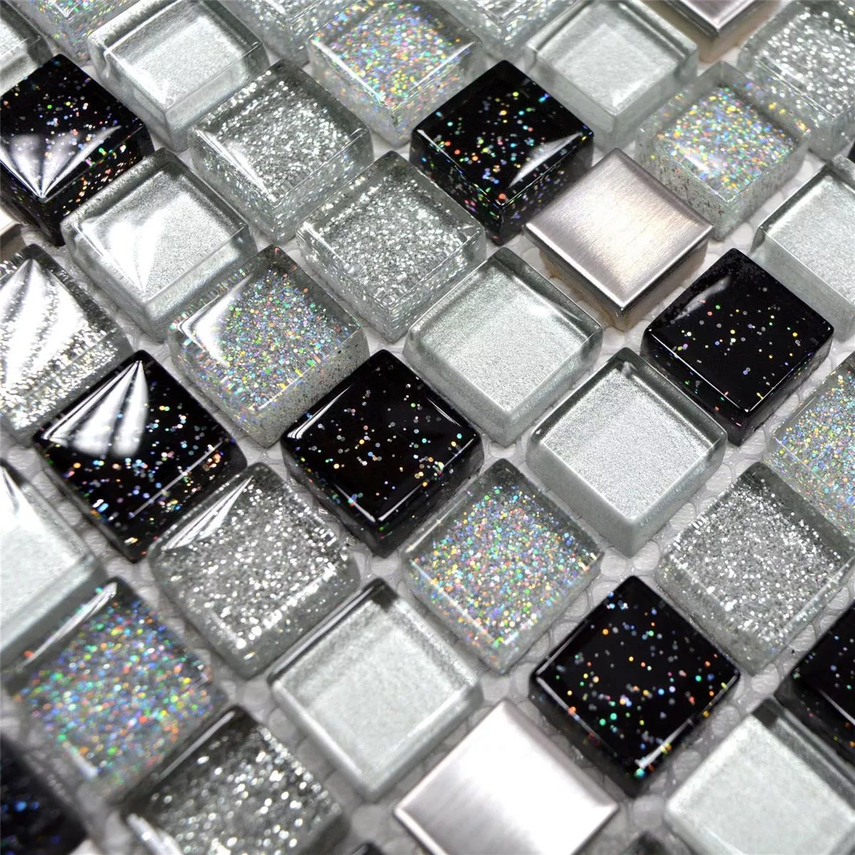 Mønster fra Glass Rustfritt Stål Metall Mosaikkfliser Sølv Svart