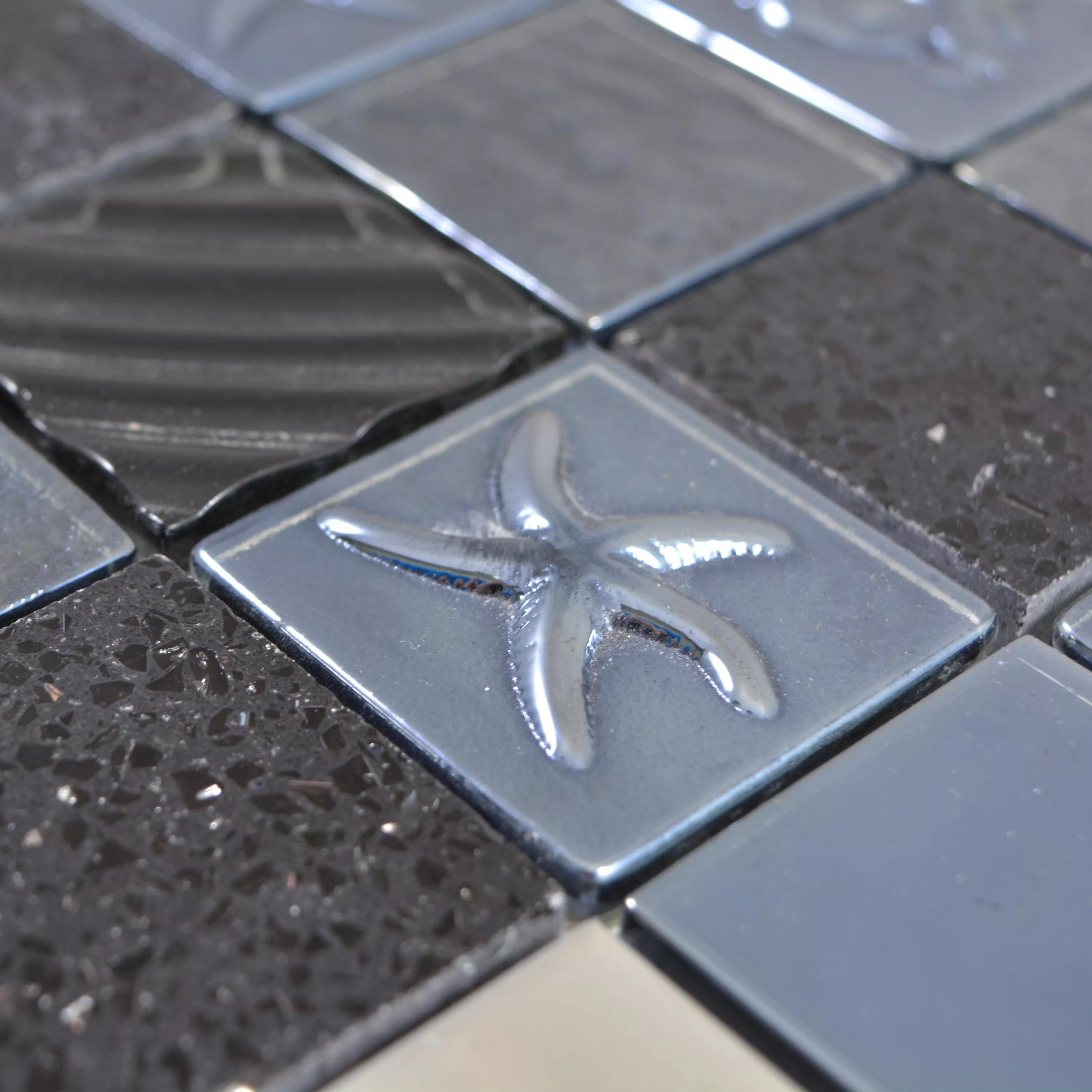 Mønster fra Glass Rustfritt Stål Naturstein Mosaikkfliser Emporia Svart Sølv