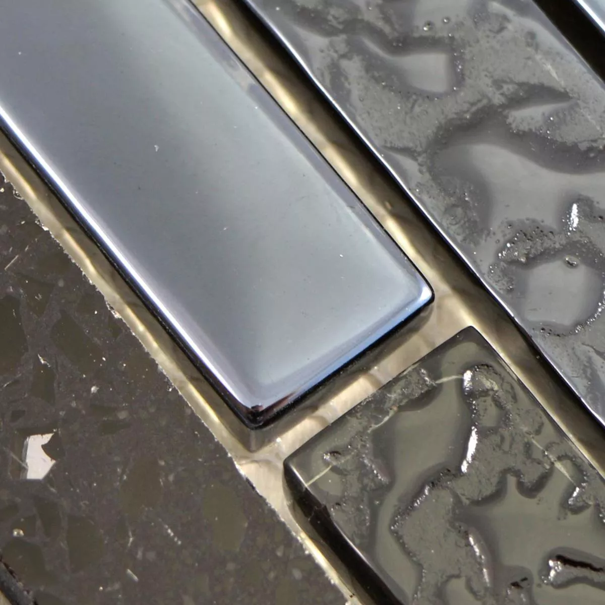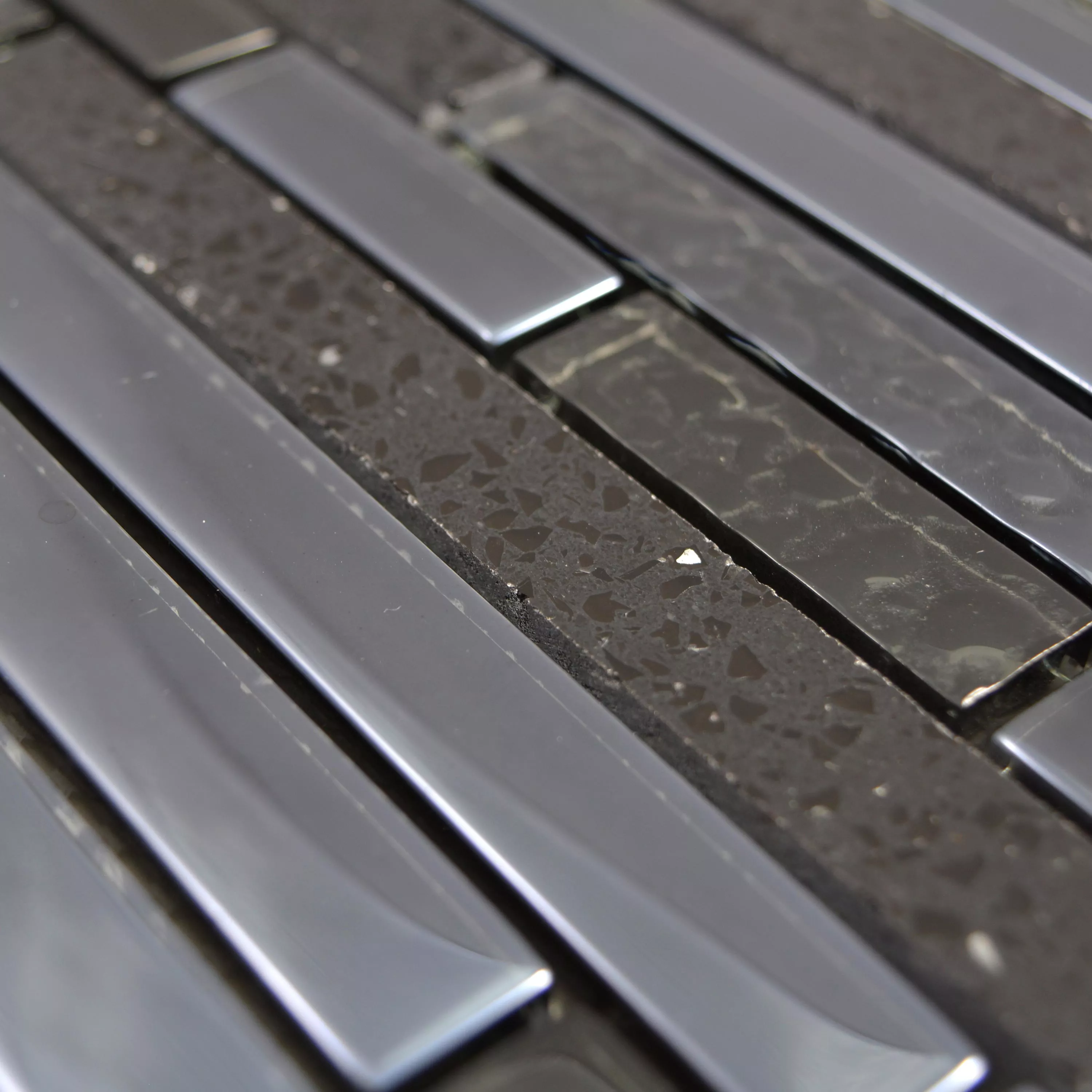 Mønster fra Glass Stein Rustfritt Stål Mosaikk Wilmont Svart Sølv