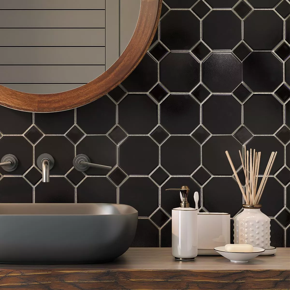 Mønster fra Keramikk Mosaikkfliser Oktagon Fürstenberg Svart
