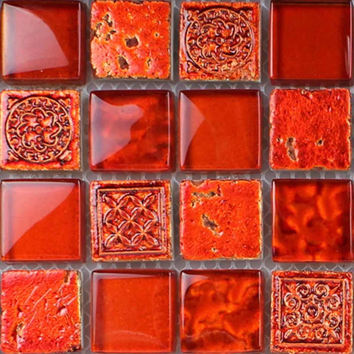 Mønster fra Mosaikkfliser Georgia Glass Naturstein Mix Rød