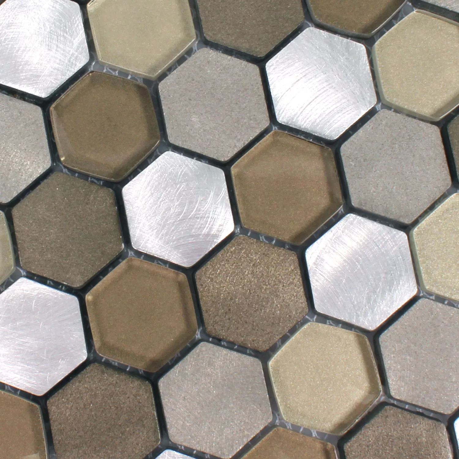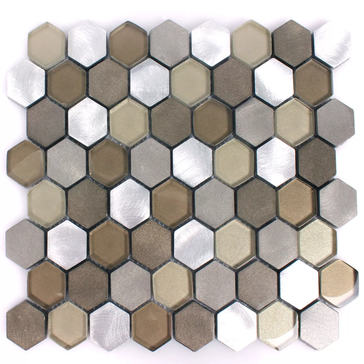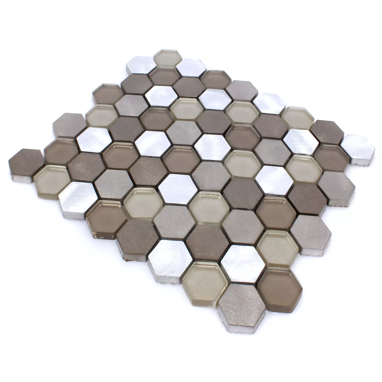 Mønster fra Mosaikkfliser Glass Alu Angela Sekskant Brun Sølv