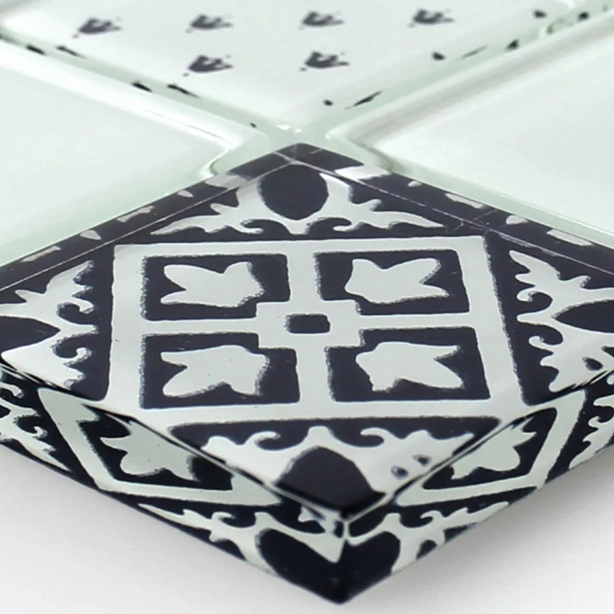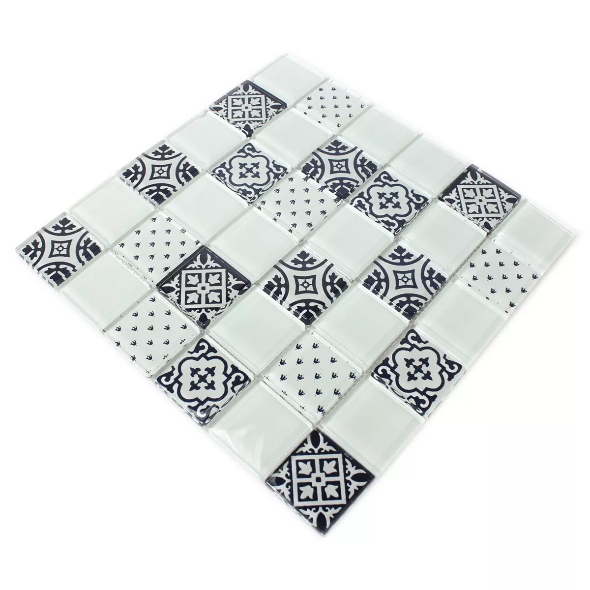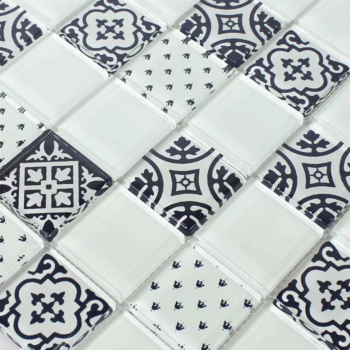 Mønster fra Mosaikkfliser Glass Barock Ornament Hvit