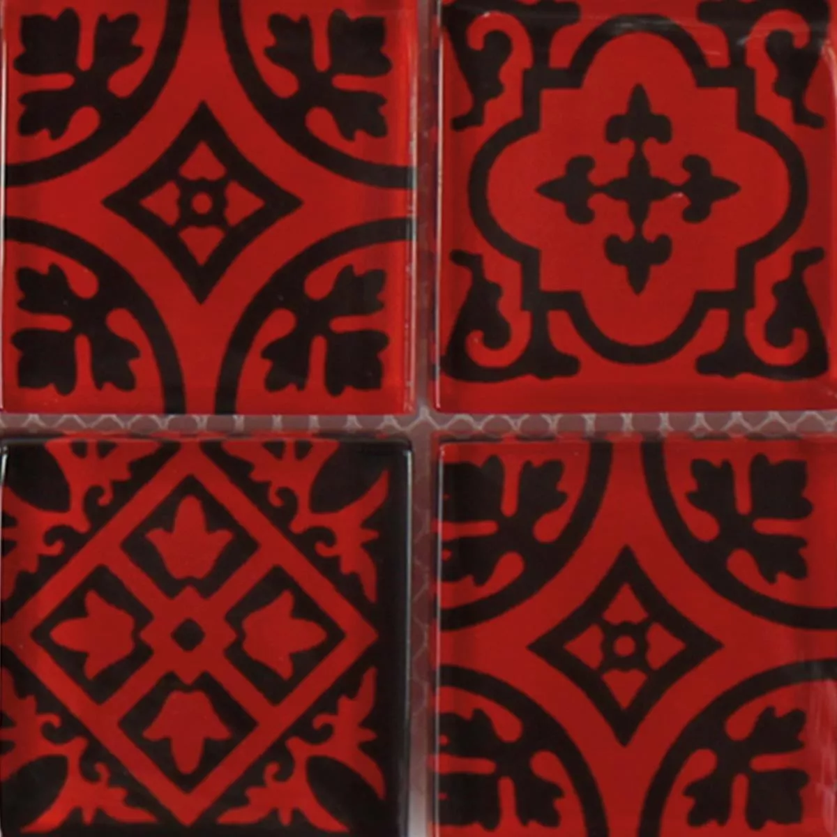 Mønster fra Mosaikkfliser Glass Barock Ornament Rød