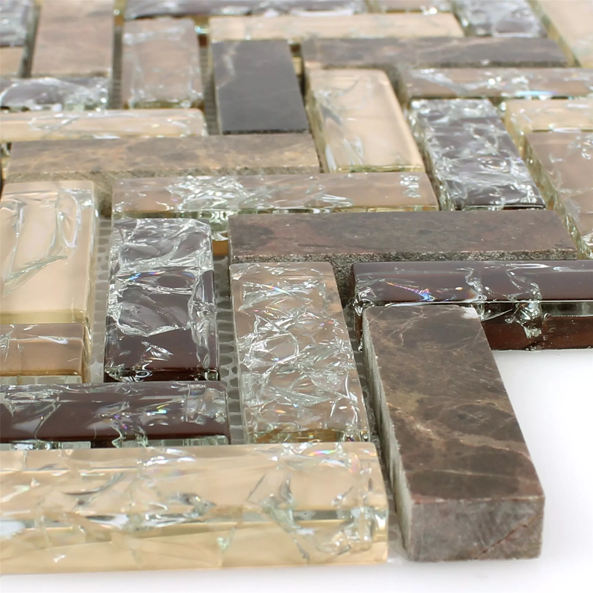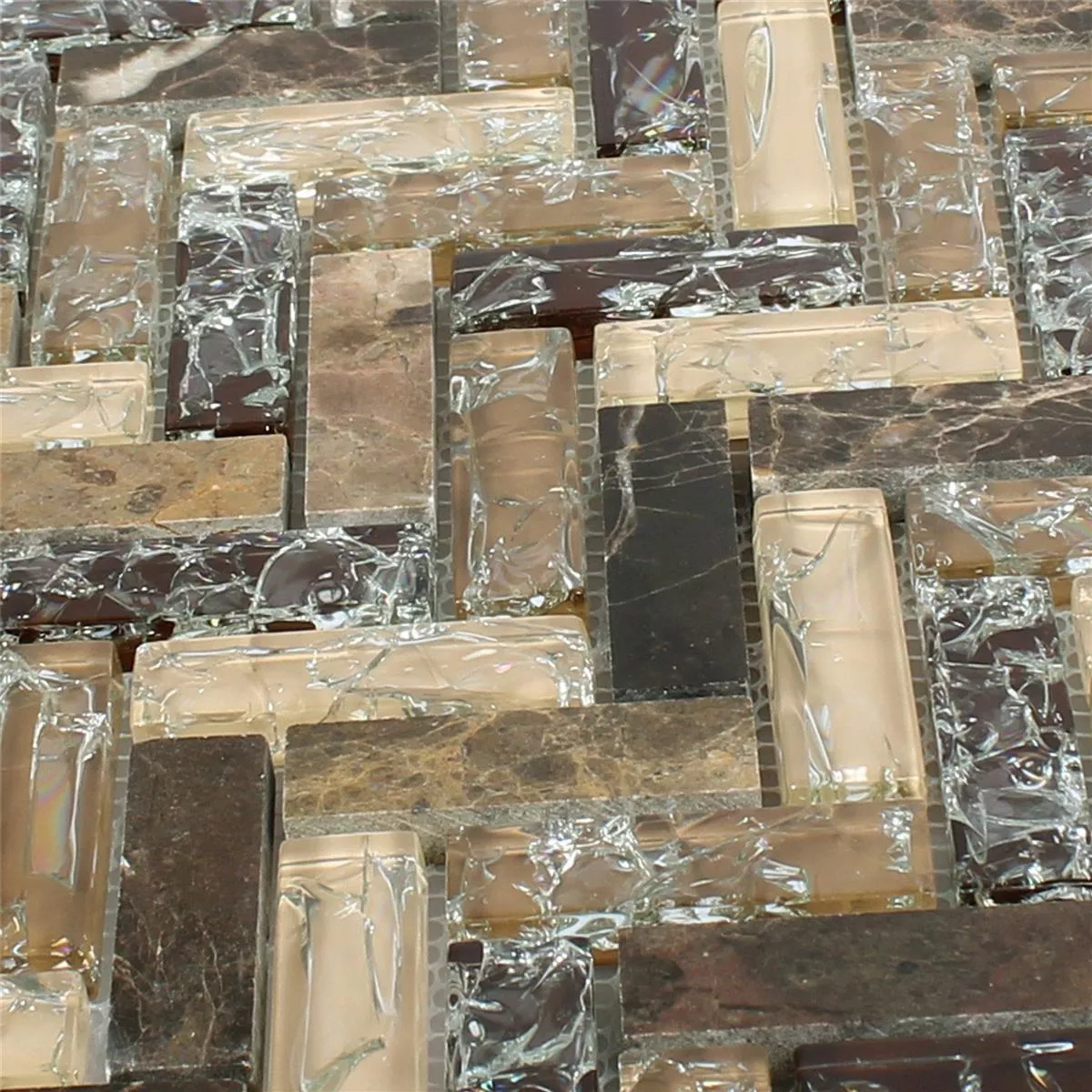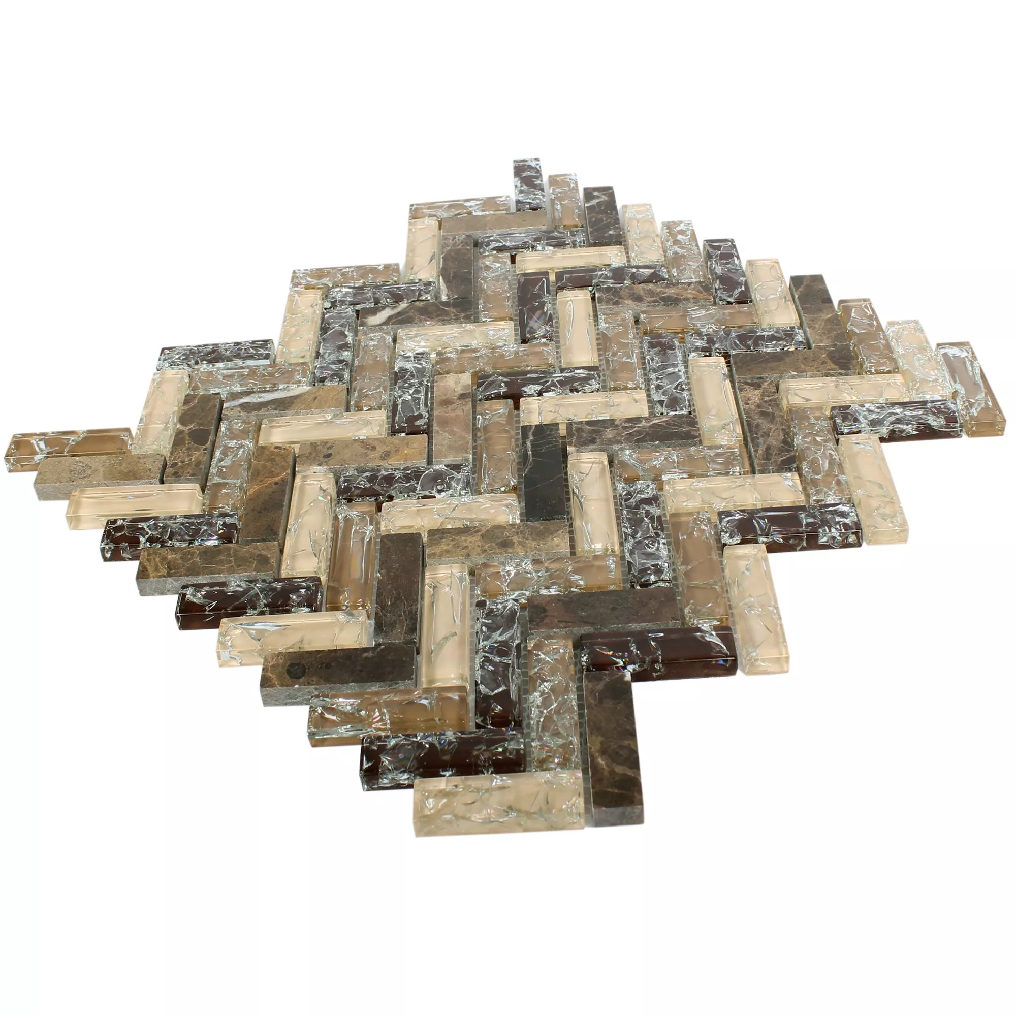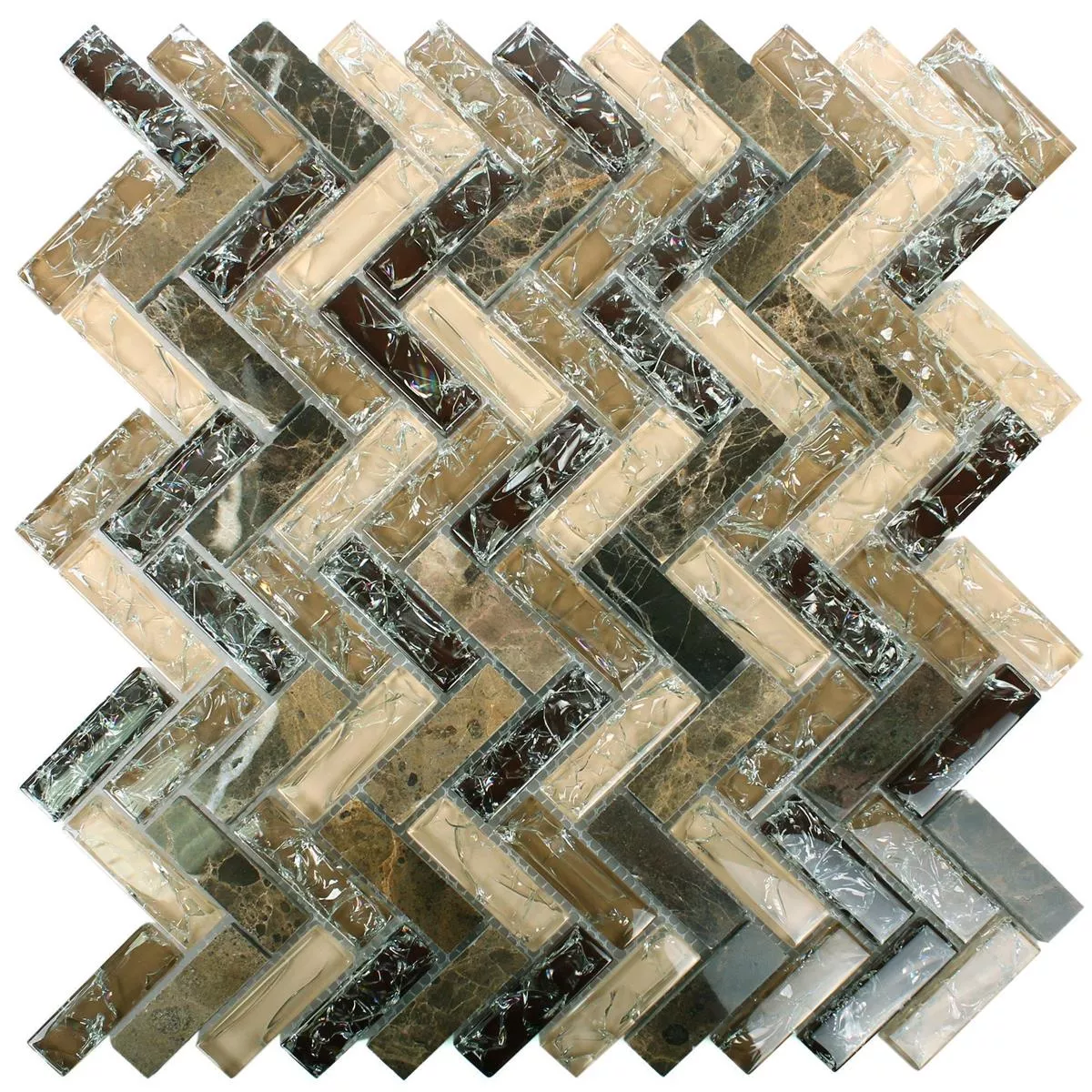 Mønster fra Mosaikkfliser Glass Naturstein Malawi Dark Emperador Fiskebein