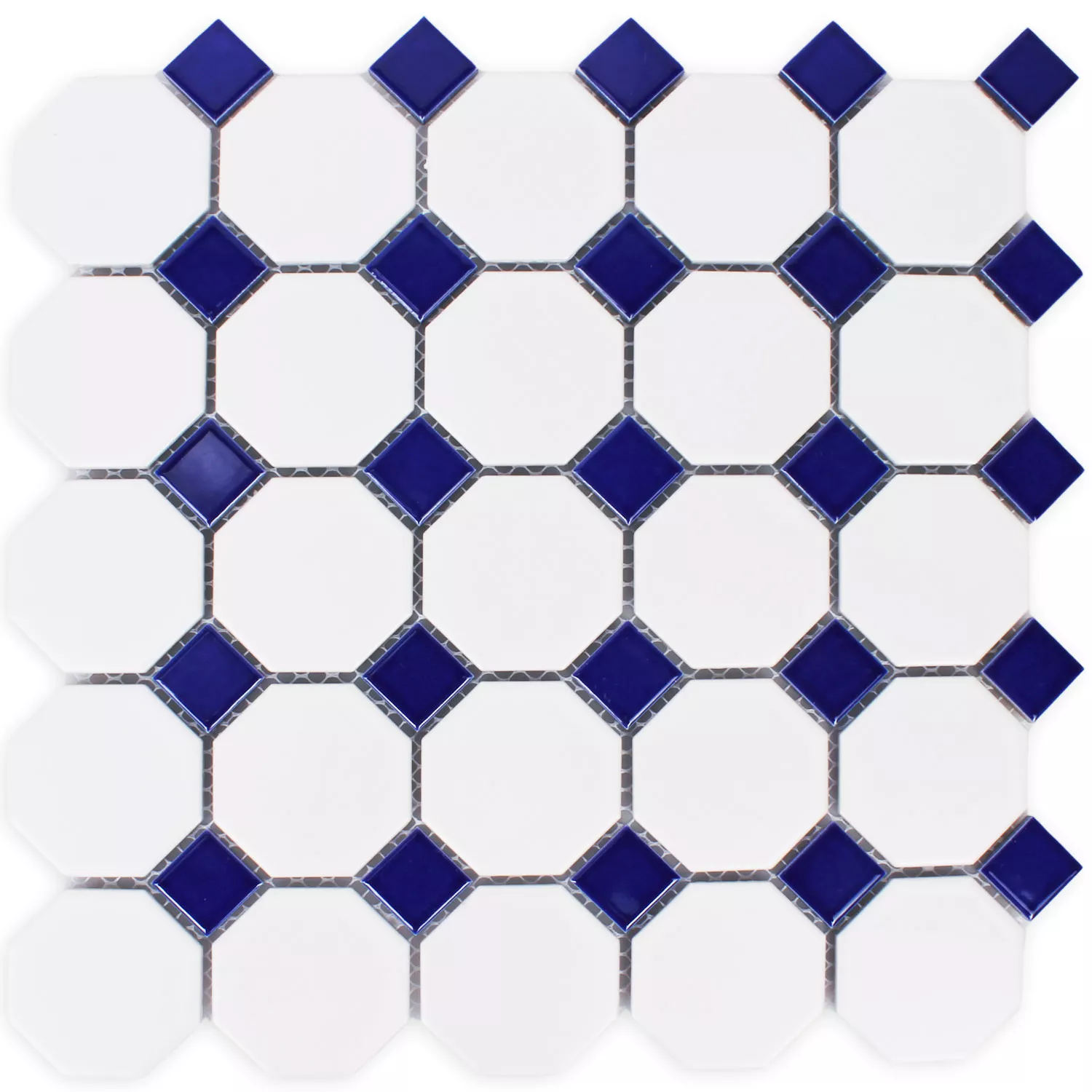 Mønster fra Mosaikkfliser Keramikk Oktagon Belami Hvit Blå