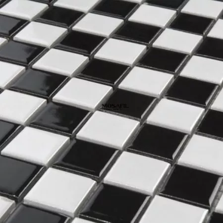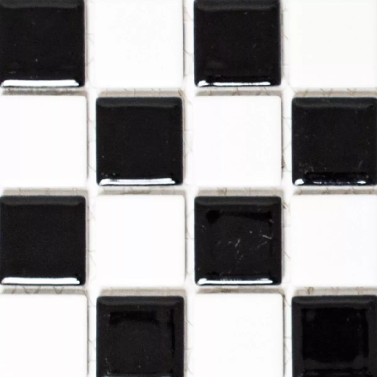 Mønster fra Mosaikkfliser Keramikk Yona Svart Sjakkbrett Glitrende