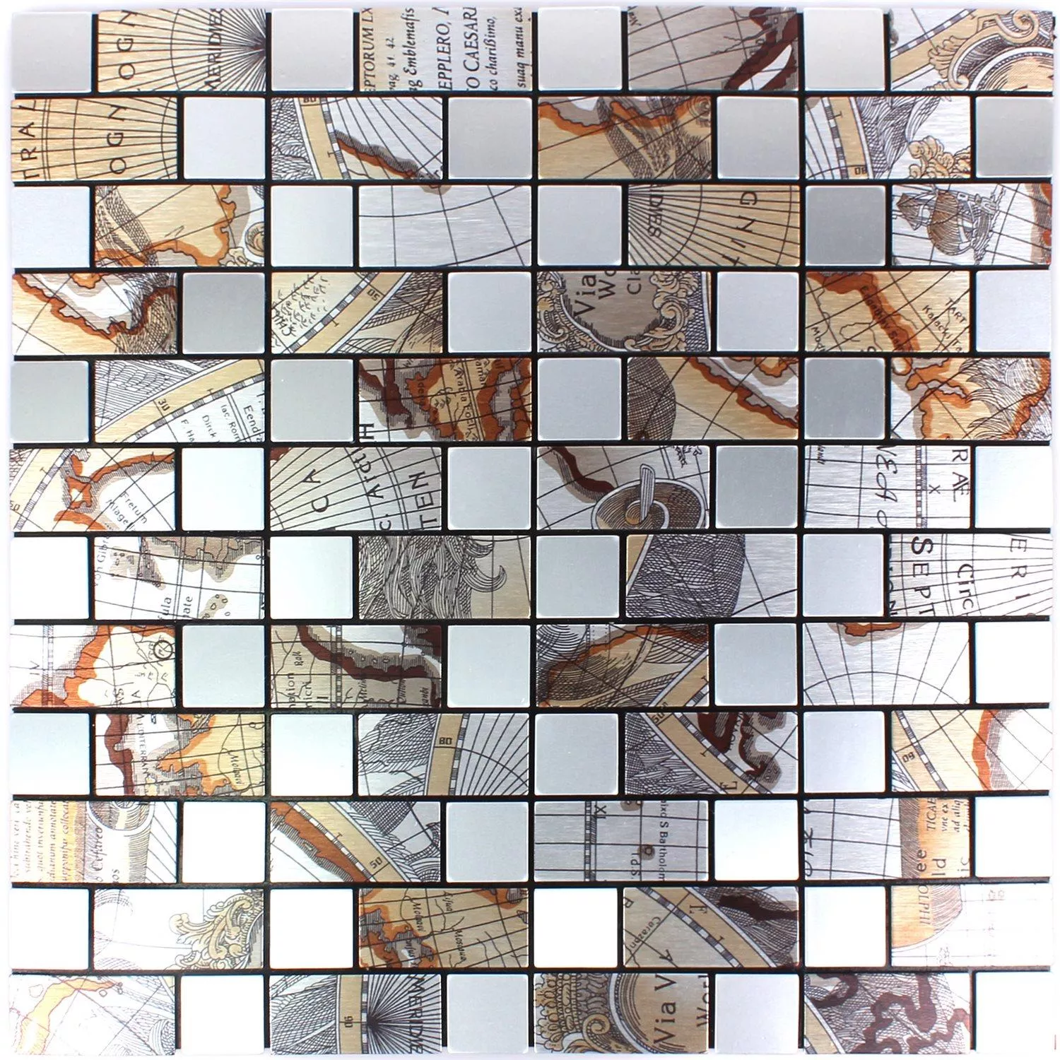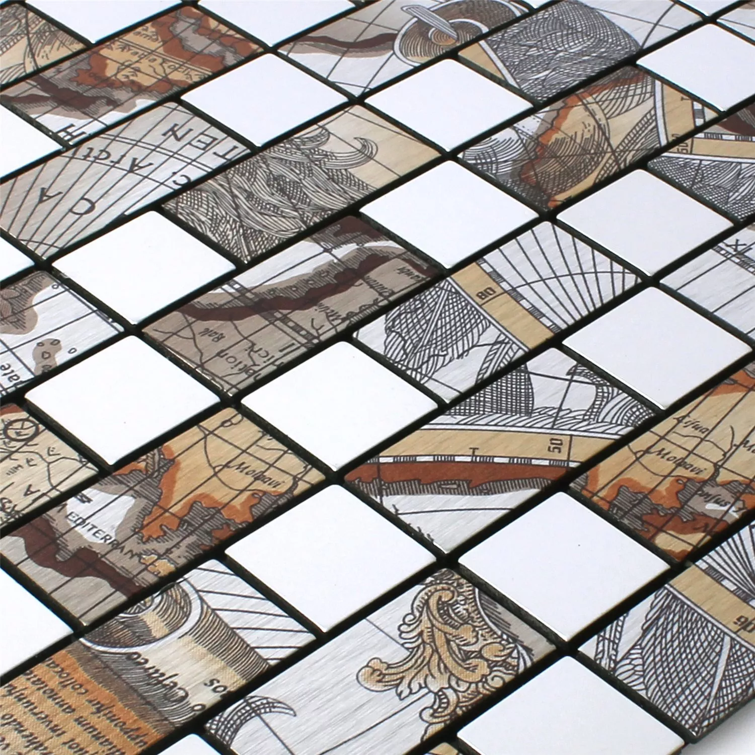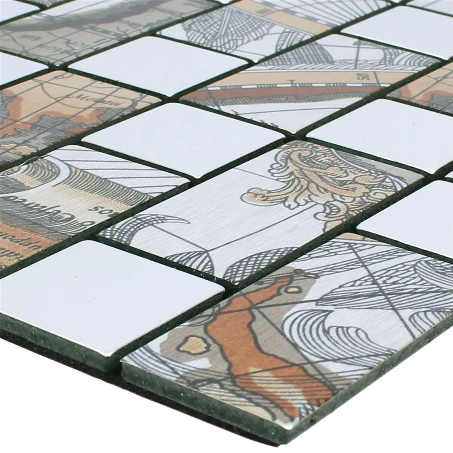 Mønster fra Mosaikkfliser Metall Selvklebende Pinta Verdenskart Sølv Rektangel