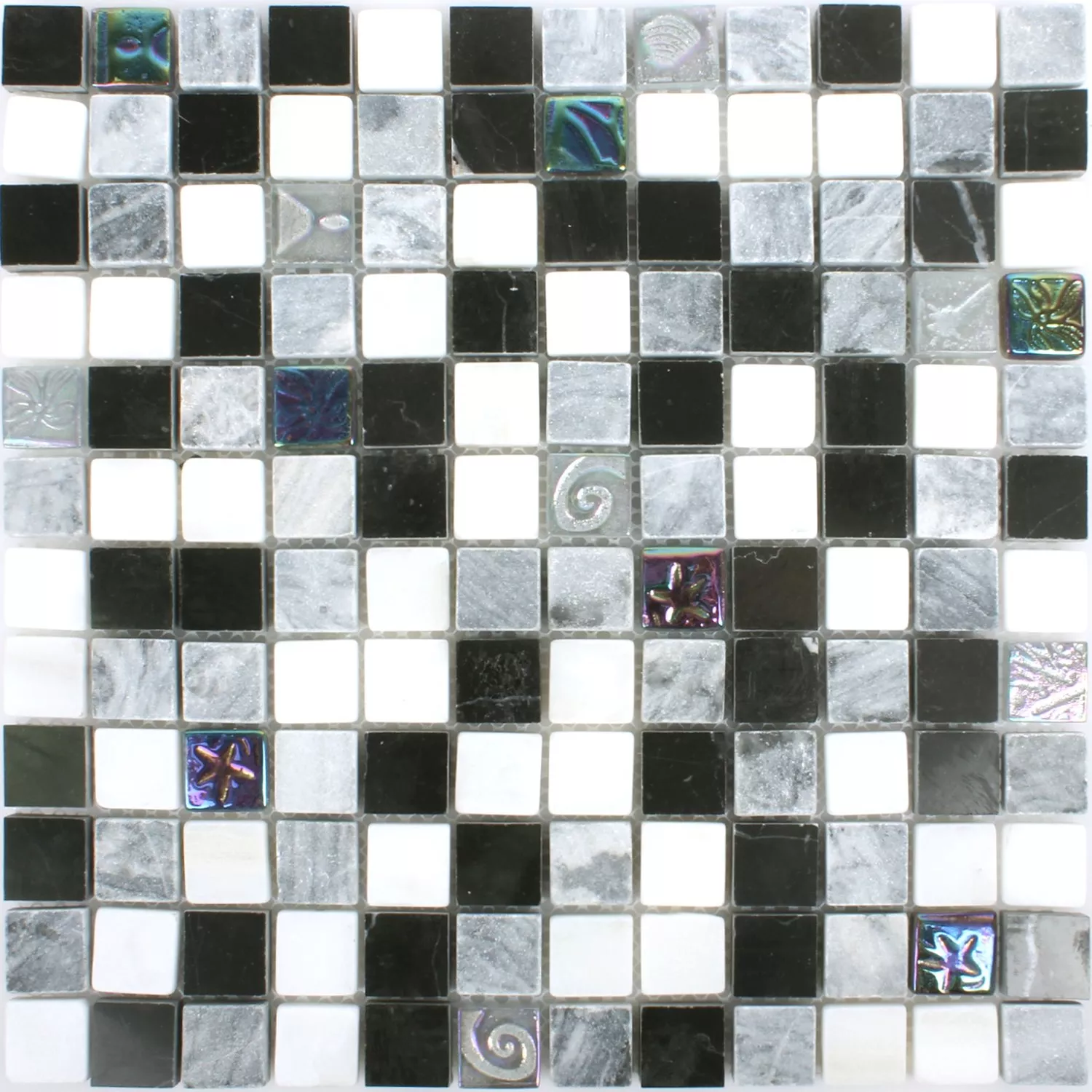 Mønster fra Mosaikkfliser Relief Marmor Glass Mix Svart Grå Hvit